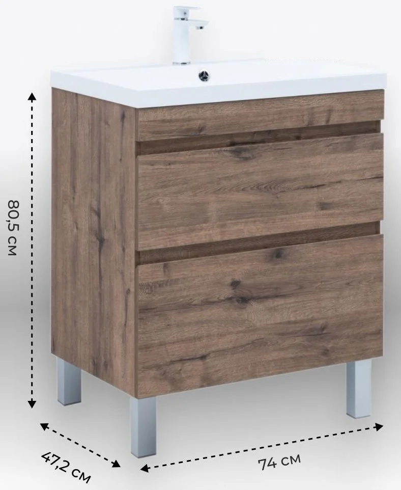 Тумба с раковиной Aquanet Нота New 75 00345800 напольная, дуб веллингтон табак