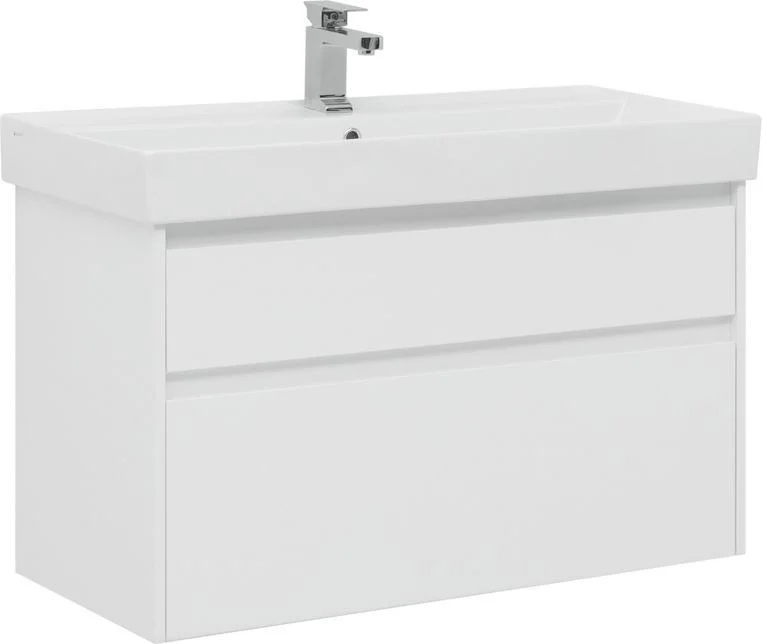 Тумба с раковиной Aquanet Nova Lite 100 белоснежного цвета из влагостойкой ламинированной древесно-стружечной плиты выглядит нарядно. Подвесной монтаж придает визуальную легкость тумбе шириной 100 см. Она оборудована двумя выдвижными ящиками. Ящики довольно вместительные и позволяют разместить все необходимое. Комплектуются направляющими немецкого производства Hettich Quadro, оснащенными доводчиками. Фасады выполнены с декоративной интегрированной ручкой, не имеющей острых краев и внутренних углов, что обеспечивает удобство эксплуатации и легкий уход за мебелью. Неглубокая и стильная керамическая раковина «Латина» идеально подходит к тумбе.