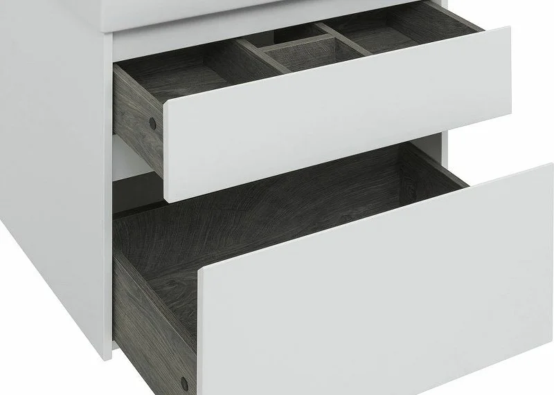 Тумба с раковиной Aquanet Nova Lite 75 белоснежного цвета из влагостойкой ламинированной древесно-стружечной плиты выглядит нарядно. Подвесной монтаж придает визуальную легкость тумбе шириной 75 см. Она оборудована двумя выдвижными ящиками. Ящики довольно вместительные и позволяют разместить все необходимое. Комплектуются направляющими немецкого производства Hettich Quadro, оснащенными доводчиками. Фасады выполнены с декоративной интегрированной ручкой, не имеющей острых краев и внутренних углов, что обеспечивает удобство эксплуатации и легкий уход за мебелью. Неглубокая и стильная керамическая раковина «Латина» идеально подходит к тумбе.