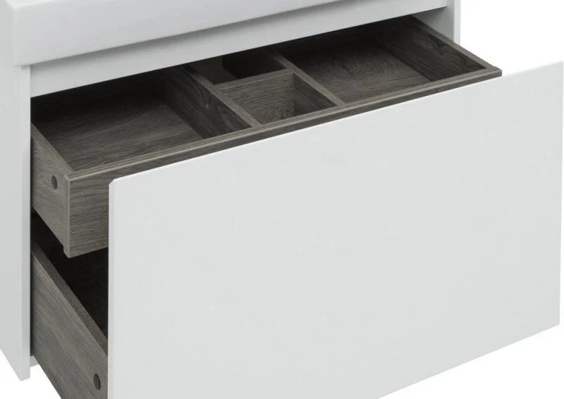 Тумба с раковиной Aquanet Nova Lite 90 белоснежного цвета из влагостойкой ламинированной древесно-стружечной плиты выглядит нарядно. Подвесной монтаж придает визуальную легкость тумбе шириной 90 см. Тумба оборудована одним большим ящиком, внутри которого предусмотрен маленький с выемкой для установки сифона и разделителями, где удобно хранить необходимые в ванной комнате мелочи. Фасады выполнены с декоративной интегрированной ручкой, не имеющей острых краев и внутренних углов, что обеспечивает удобство в эксплуатации и легкий уход за мебелью. Ящики комплектуются направляющими немецкого производства Hettich Quadro, оснащенными доводчиками. Неглубокая и стильная керамическая раковина «Латина» идеально подходит к тумбе.
