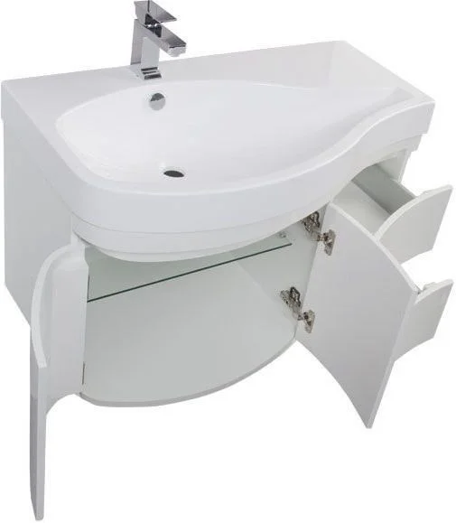 Подвесная тумба для ванной комнаты Акванет Сопрано подойдет тем, кто предпочитает современный стиль в интерьере. Обтекаемые формы, лаконичные цвета, оригинальная деталь – ручки в виде прорезей в фасадах, все это выделяет гарнитур Сопрано, делает его стилистическим центром ванной комнаты. Раковина-столешница из литьевого мрамора повторяет плавные линии тумбы, широкое крыло позволяет с удобством разместить большое количество гигиенических средств и принадлежностей. Комплект имеет как правосторонний, так и левосторонний варианты расположения. Каталог мебели Aquanet предлагает версии тумбы Сопрано как только с выдвижными ящиками, так и в сочетании с распашными дверцами. <