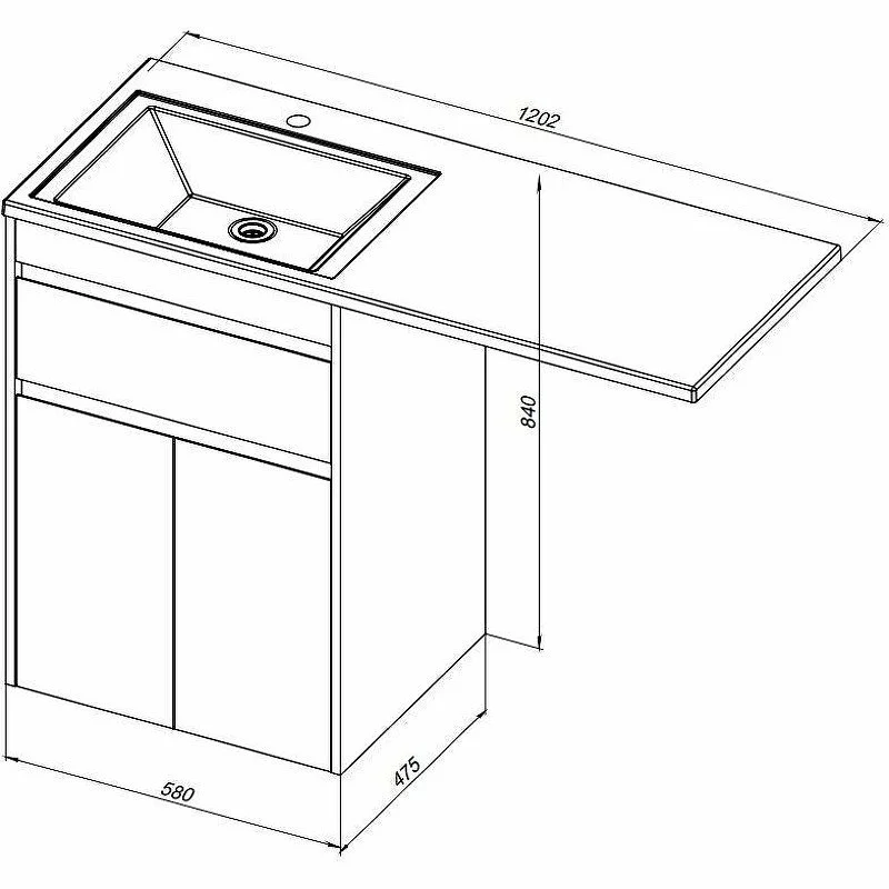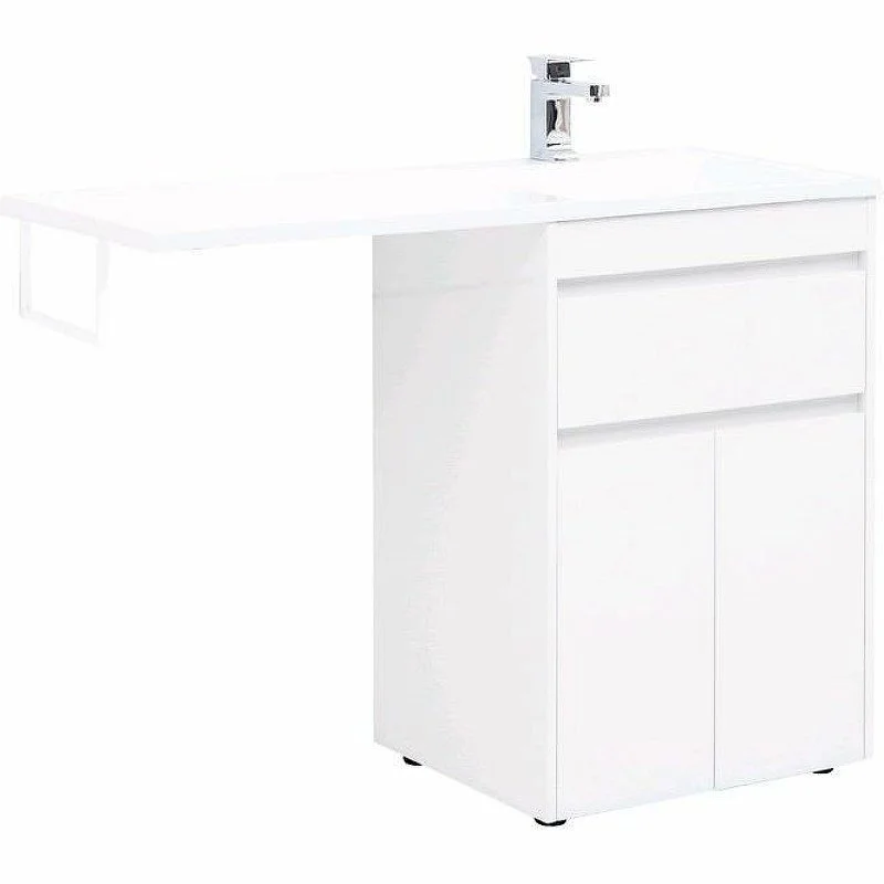 Тумба с раковиной Aquanet Токио 120 R (напольная, 1 ящик, 2 дверцы) белого цвета представляет новый формат тумб производства Aquanet. Раковина из литьевого мрамора имеет длинную платформу, которая выходит далеко за пределы тумбы. Она предназначена для того, чтобы установить с левой стороны от тумбы стиральную машину. Платформа имеет такую длину, которая позволит спрятать под нее машинку средних размеров с фронтальной загрузкой. Корпус тумбы выполнен из влагостойкого ЛДСП, а фасады – из МДФ с покрытием эмалью. Разнообразные зоны хранения в тумбе шириной 580 мм скрыты в ящике и за распашными дверками. Тумбу можно использовать и без соседства со стиральной машиной, а свободное пространство под платформой раковины занять подкатной тумбой, приспособлениями для уборки помещения или столиком.