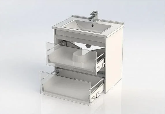 Тумба в ванную комнат Акванет Тулон подарит дополнительное пространство для хранения банных принадлежностей, зона хранения представлена двумя глубокими выдвижным ящиками. Аккуратный минимализм, торжество светлого тона и прямоугольника. Геометрически четкие формы и отсутствие декора — чистота изящества воспевает красоту, подчиненную функциональности. Раковина в этой коллекции сделана из керамики. При этом борта ее не широкие, как их чаще всего выполняют у керамических сантехнических изделий, а узкие, что выглядит утонченно и изящно. Белый цвет тумбы работает на увеличение пространства, визуально облегчает конструкцию, делает ее почти прозрачной.