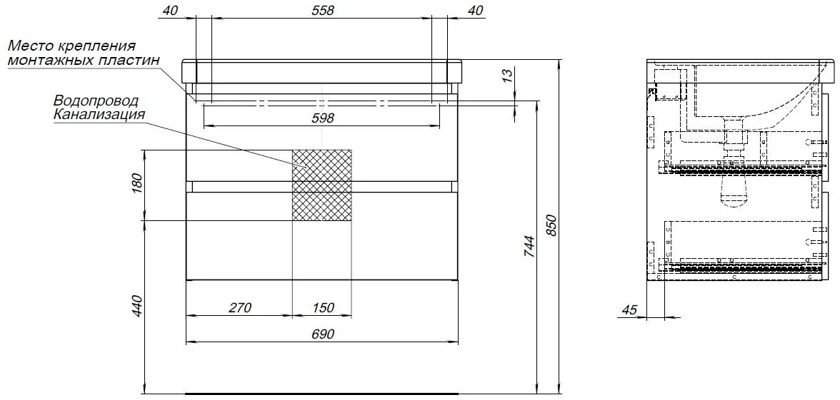 Тумба с раковиной Aquanet Вега 2.0 70 00344746 черный