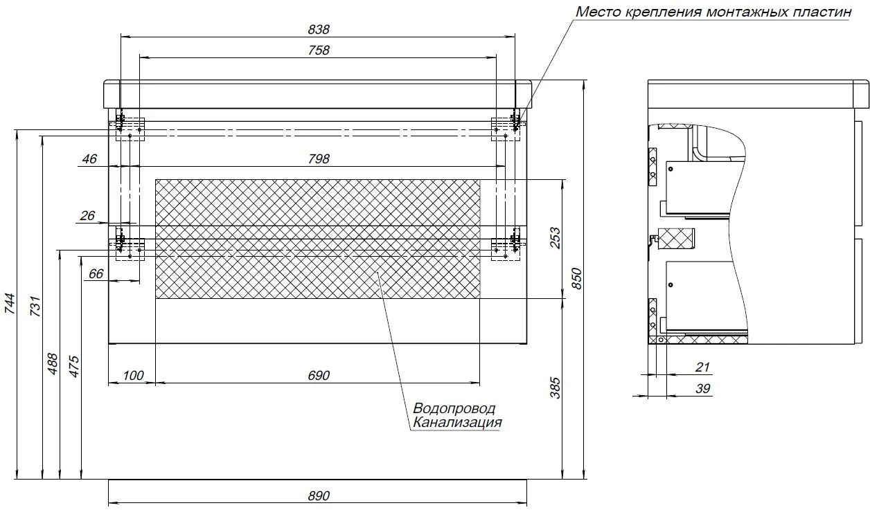 Тумба с раковиной Aquanet Вега 2.0 90 00344748 мисти грин