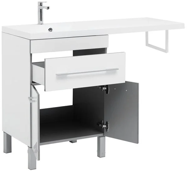 Напольная тумба с раковиной "Верона" белого цвета с покрытием из качественного акрила — такая отделка придает эффектности внешнему виду и повышает уровень влагозащиты. Применение акрила в производстве мебели для ванных — уникальное предложение, созданное на специализированной линии предприятия.
