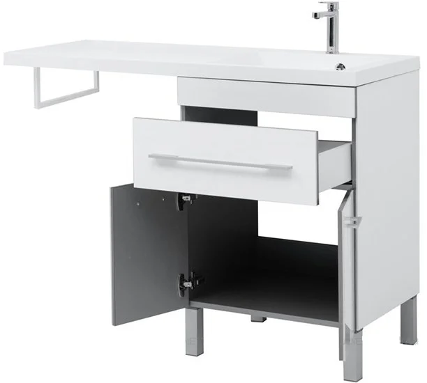 Напольная тумба с раковиной "Верона" белого цвета с покрытием из качественного акрила — такая отделка придает эффектности внешнему виду и повышает уровень влагозащиты. Применение акрила в производстве мебели для ванных — уникальное предложение, созданное на специализированной линии предприятия.