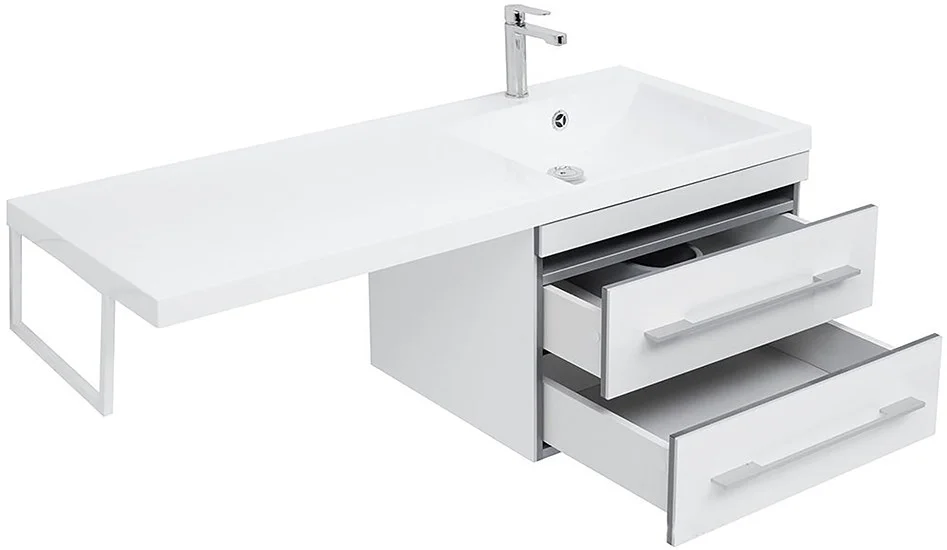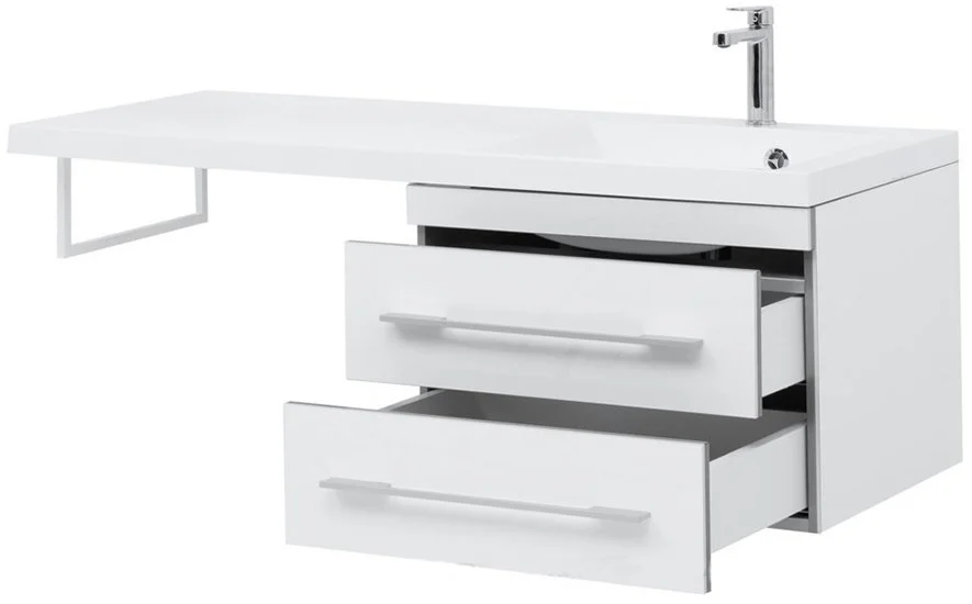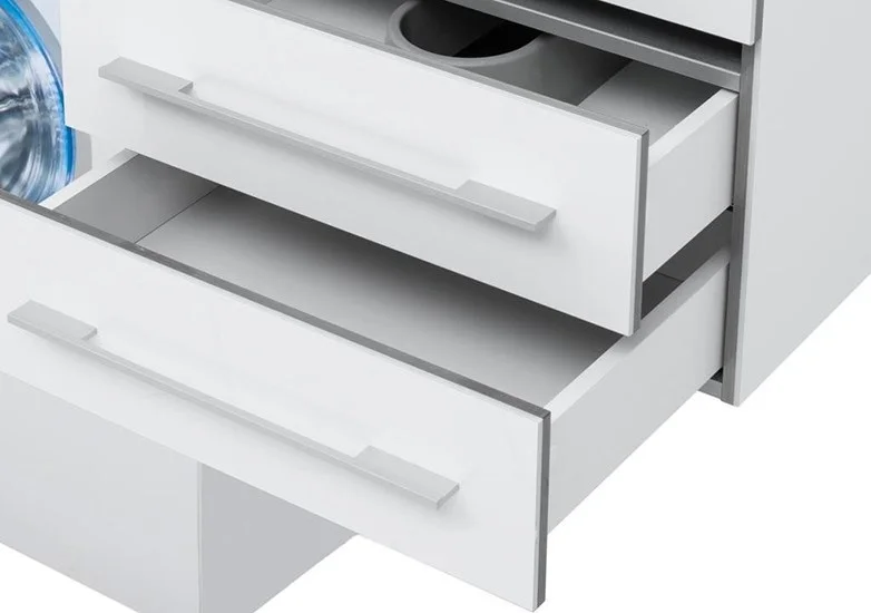 Навесной модуль имеет вместительные ящики, куда можно разместить много необходимых в ванной комнате вещей, в том числе использовать для хранения полотенец.