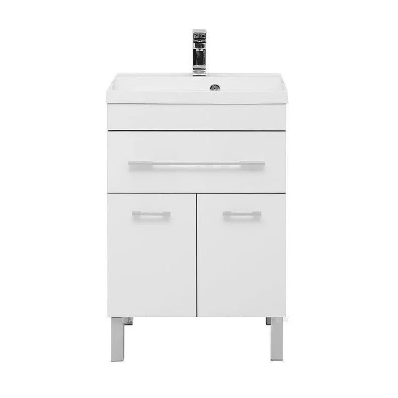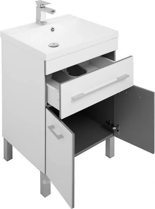 Тумба напольная с раковиной серии Верона с покрытием из качественного акрила — такая отделка придает эффектности внешнему виду и повышает уровень влагозащиты. Применение акрила в производстве мебели для ванных — уникальное предложение, созданное на специализированной линии предприятия. Нейтральный цвет универсален, потому мебель Верона можно совмещать с любыми оттенками в интерьере и разнообразием креативных идей. Экстравагантная геометричность формы подчеркнута горизонтальными линиями фурнитуры ручек выдвижных ящиков. Их вместительное пространство обеспечит дополнительное место хранения банных принадлежностей. <
