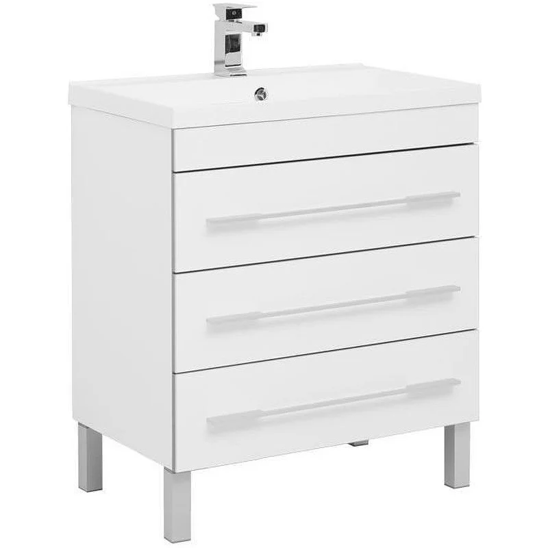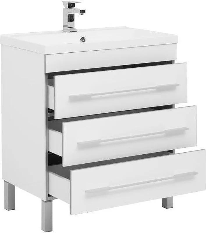 Тумба напольная с раковиной серии Верона с покрытием из качественного акрила — такая отделка придает эффектности внешнему виду и повышает уровень влагозащиты. Применение акрила в производстве мебели для ванных — уникальное предложение, созданное на специализированной линии предприятия. Нейтральный цвет универсален, потому мебель Верона можно совмещать с любыми оттенками в интерьере и разнообразием креативных идей. Экстравагантная геометричность формы подчеркнута горизонтальными линиями фурнитуры ручек выдвижных ящиков. Их вместительное пространство обеспечит дополнительное место хранения банных принадлежностей.