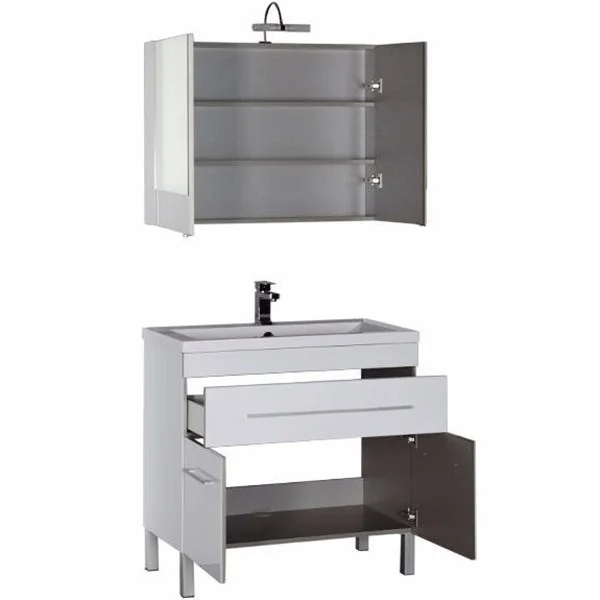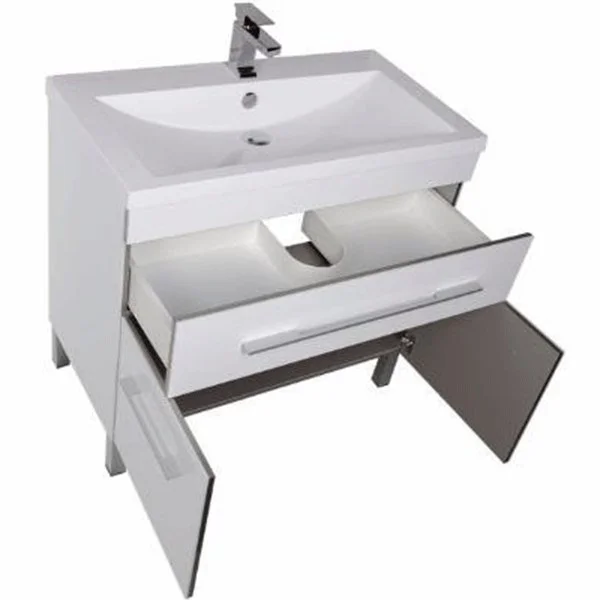 Тумба напольная с раковиной серии Верона с покрытием из качественного акрила — такая отделка придает эффектности внешнему виду и повышает уровень влагозащиты. Применение акрила в производстве мебели для ванных — уникальное предложение, созданное на специализированной линии предприятия. Нейтральный цвет универсален, потому мебель Верона можно совмещать с любыми оттенками в интерьере и разнообразием креативных идей. Экстравагантная геометричность формы подчеркнута горизонтальными линиями фурнитуры ручек выдвижных ящиков. Их вместительное пространство обеспечит дополнительное место хранения банных принадлежностей. <