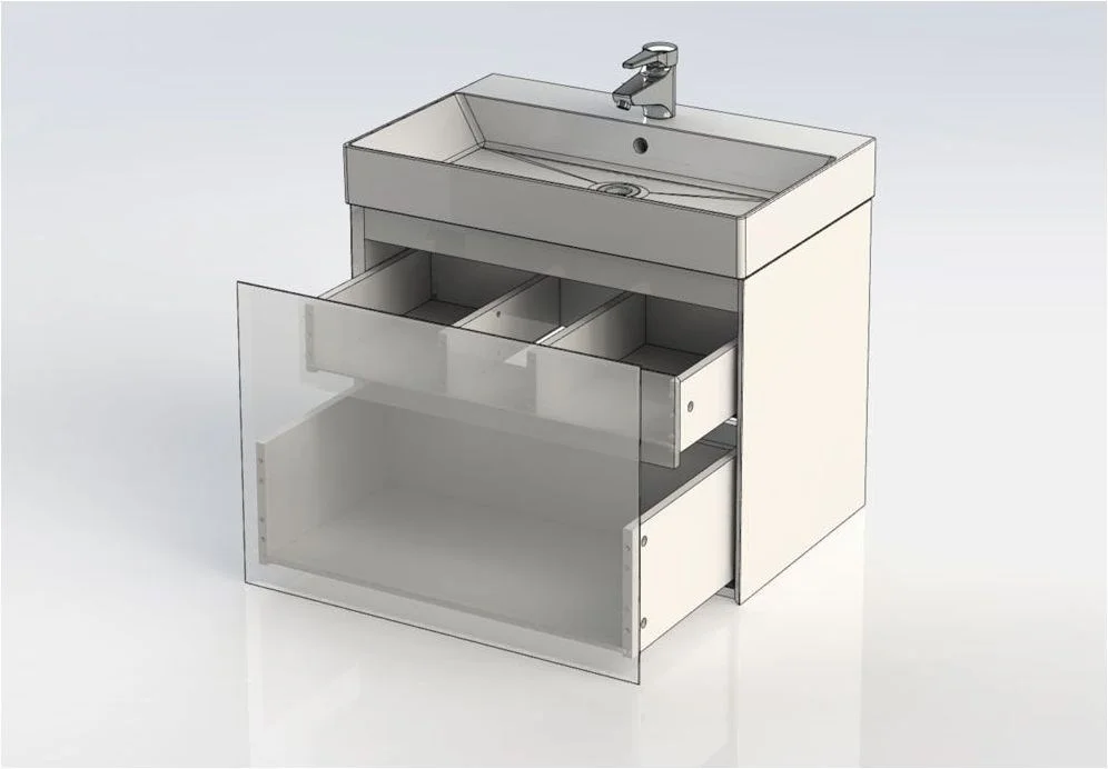 Тумба с раковиной Aquanet Йорк 70 кажется довольно-таки простой внешне, но за видимой простотой кроется тщательная работа над каждой линией, над каждой деталью. Обратите внимание на интегрированную ручку, которой по сути не видно, но при открывании выдвижного ящика она поражает удобством использования. Радует глаз зеркальная чистота глянцевой поверхности фасада из МДФ. Мебель белоснежная. Цветовой акцент появляется при выдвижении ящика тумбы, так как внутренние детали сделаны в цвете «дуб сонома». Сочетание выглядит благородно и эстетично, при этом не изменяя общей идее лаконичности во всем. Ящик в тумбочке один, но внутри него прячется еще одна зона хранения, в которой можно разложить по местам разнообразные мелочи. В системе выдвижения использована фурнитура немецкого производителя Hettich. Тумба шириной 70 см комплектуется керамической раковиной Sanovit. Она может быть как подвесной, так и напольной – на выбор покупателя. <