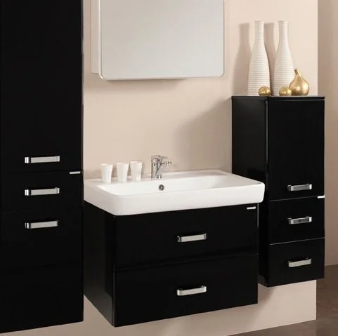 Стильная лаконичная модель, созданная для небольших ванных комнат. В тумбе имеются два ящика, изготовленные из декоративной влагостойкой ДСП. Верхний ящик имеет специальную организацию пространства, позволяющую хранить мелкие предметы, а нижний – широкий и вместительный для более крупных предметов.