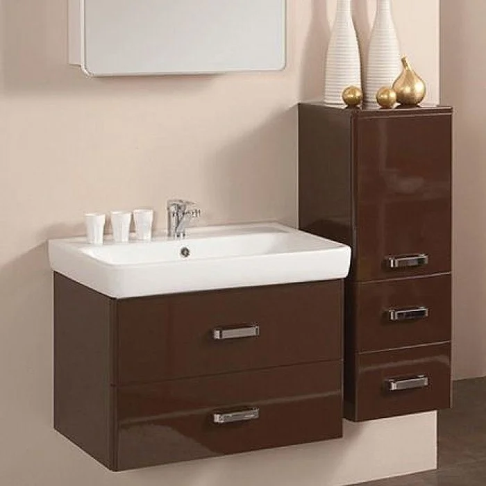 Стильная лаконичная модель. В тумбе имеются два ящика, изготовленные из декоративной влагостойкой ДСП. Нижний ящик тумбы – широкий и вместительный – предназначен для крупных предметов, а в верхнем имеется специальная организация пространства, позволяющая хранить мелкие вещи.
