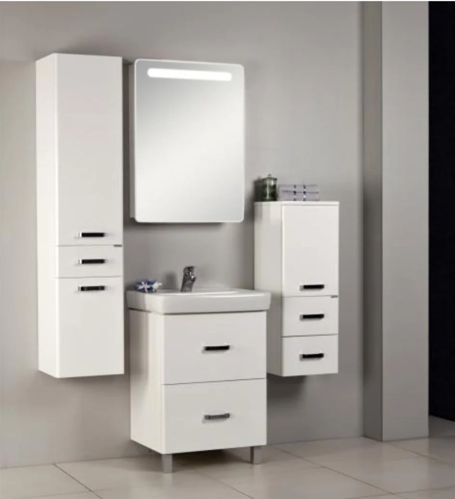 АМЕРИНА Н - модель из коллекции АМЕРИНА, предусматривающая установку на ножки и имеет 2 внешних ящика, а за верхним скрывается еще один – скрытый встроенный ящик. Внешние ящики установлены на направляющие нижнего крепежа, обеспечивающие жесткое и надежное крепление и плавный ход. В направляющие встроены доводчики. Дополнительно организовано нижнее подключение труб водоснабжения и канализации. Эти тумбы обладают всеми преимуществами тумб АМЕРИНА: