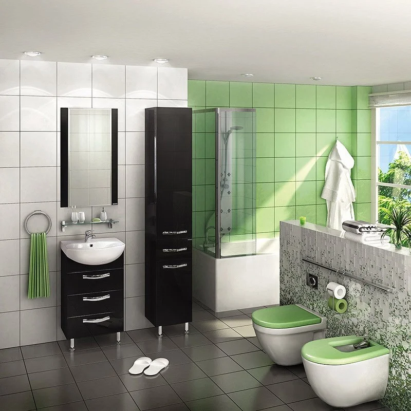Набор Ария 50 Н - модификация модели «Ария». Тумба и колонна устанавливаются на пол при помощи регулируемых по высоте ножек. В тумбе – три выдвижных ящика из влагостойкой ДСП, верхний из которых снабжен организацией пространства. В колонне внизу расположен откидной фасад с бельевой корзиной, а за верхним распашным фасадом расположены регулируемые по высоте полочки.