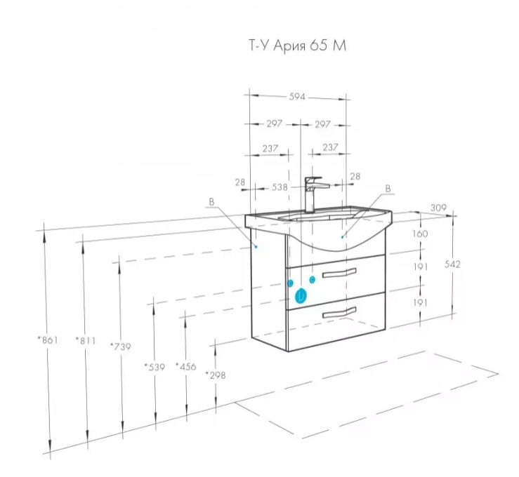 1A123301AA010 Тумба-умывальник "Ария 65 М"