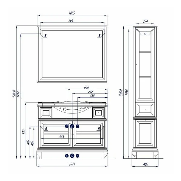 В комплектацию тумбы входят ручки - 4 шт., ножки - 2 шт.,2 навеса, 2 ящика с петлями с интегрированным доводом.