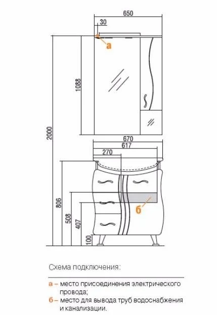 Раковина «Аквамель» 1WH110213, которая идет в комплекте, имеет габариты 66,5х52,5х13,5 см.