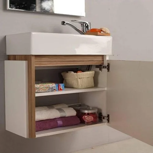 Тумба предназначена для подвесного монтажа и легко может скрыть канализационные трубы, к которым подключается мойка.