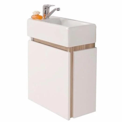 Тумба под раковину Акватон 1A172801EK49R — это правосторонняя модель из серии Эклипс 46 М. Она привлекает внимание необычным дизайнерским решением, заключающимся в декорировании корпуса цвета «эбони светлый» белыми глянцевыми панелями и фасадом. Размеры изделия довольно компактны и составляют 44,7х47,2х24,4 см.