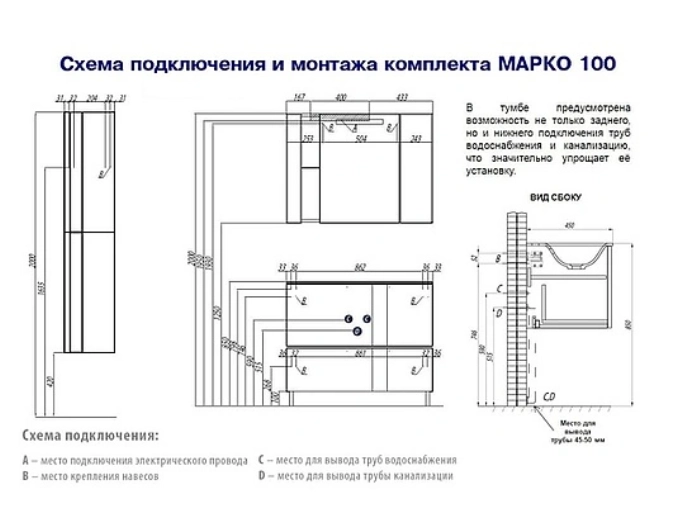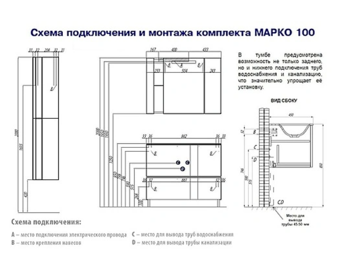 Также в комплекте: усиленный кронштейн для подвески - 2; ручка - 1; ящик на направляющих с системой плавного закрывания - 1. Раковина Тина 100 1A710431TI010