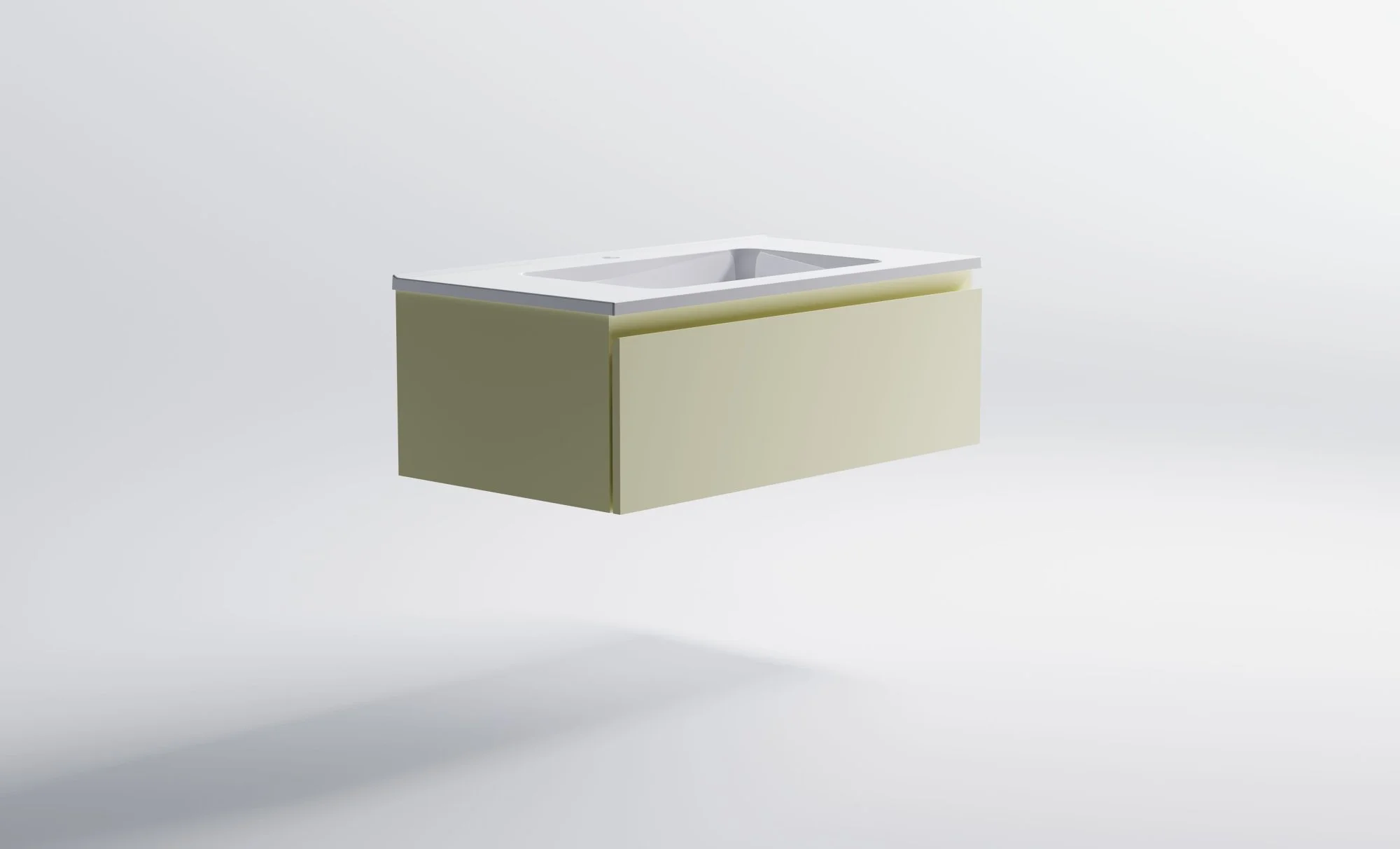 Тумба под раковину Альфа 90 с 1 ящиком бежевый (RAL1013 матовый) + Раковина "Альфа 90"