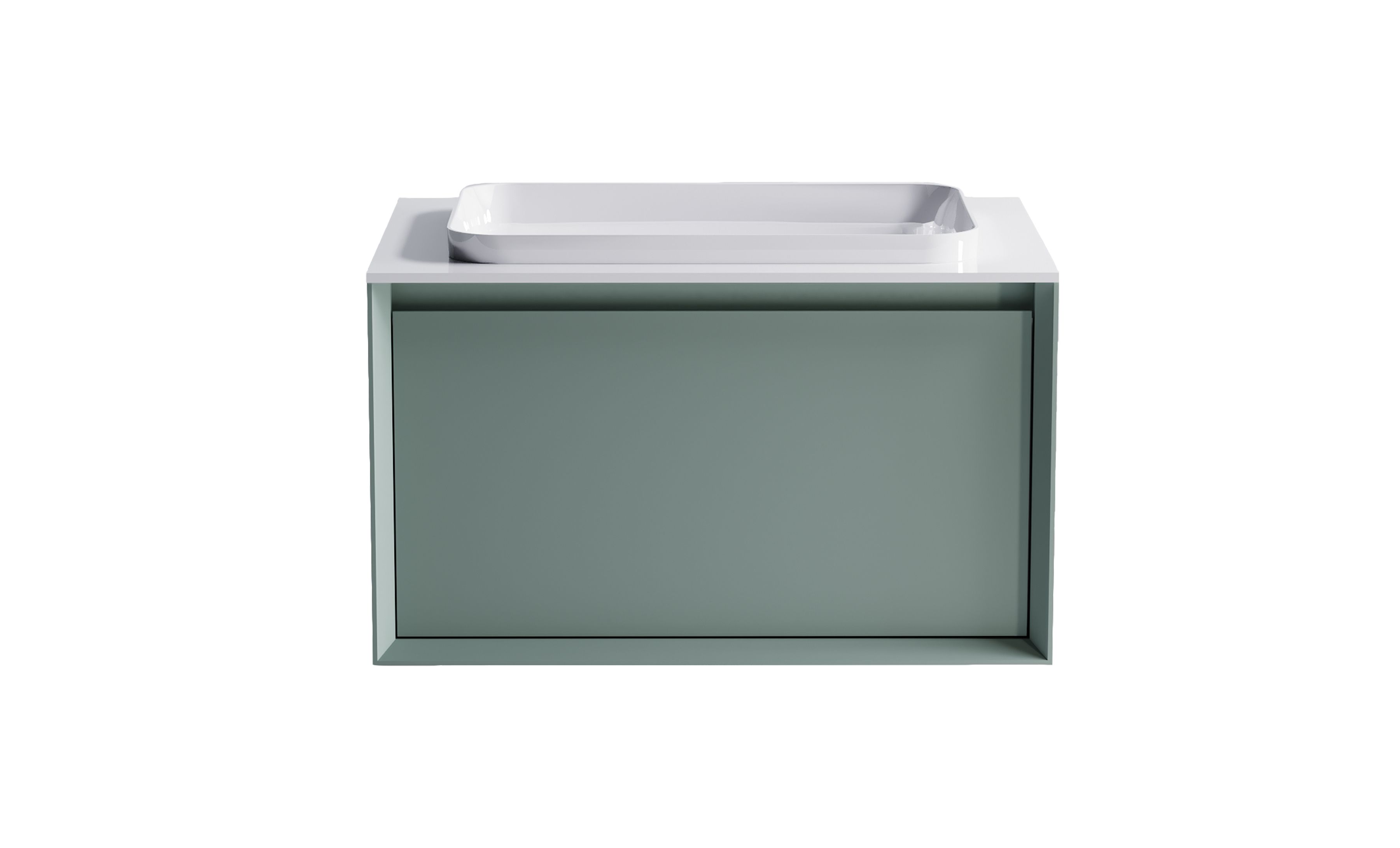 Тумба под раковину Фрейм 700 с 1 ящиком зеленый (NCS S 3005-b80g матовый) + Столешница "Фрейм" 700 мм + Раковина "Антарес" 55х38 (30мм над уровнем столешницы)