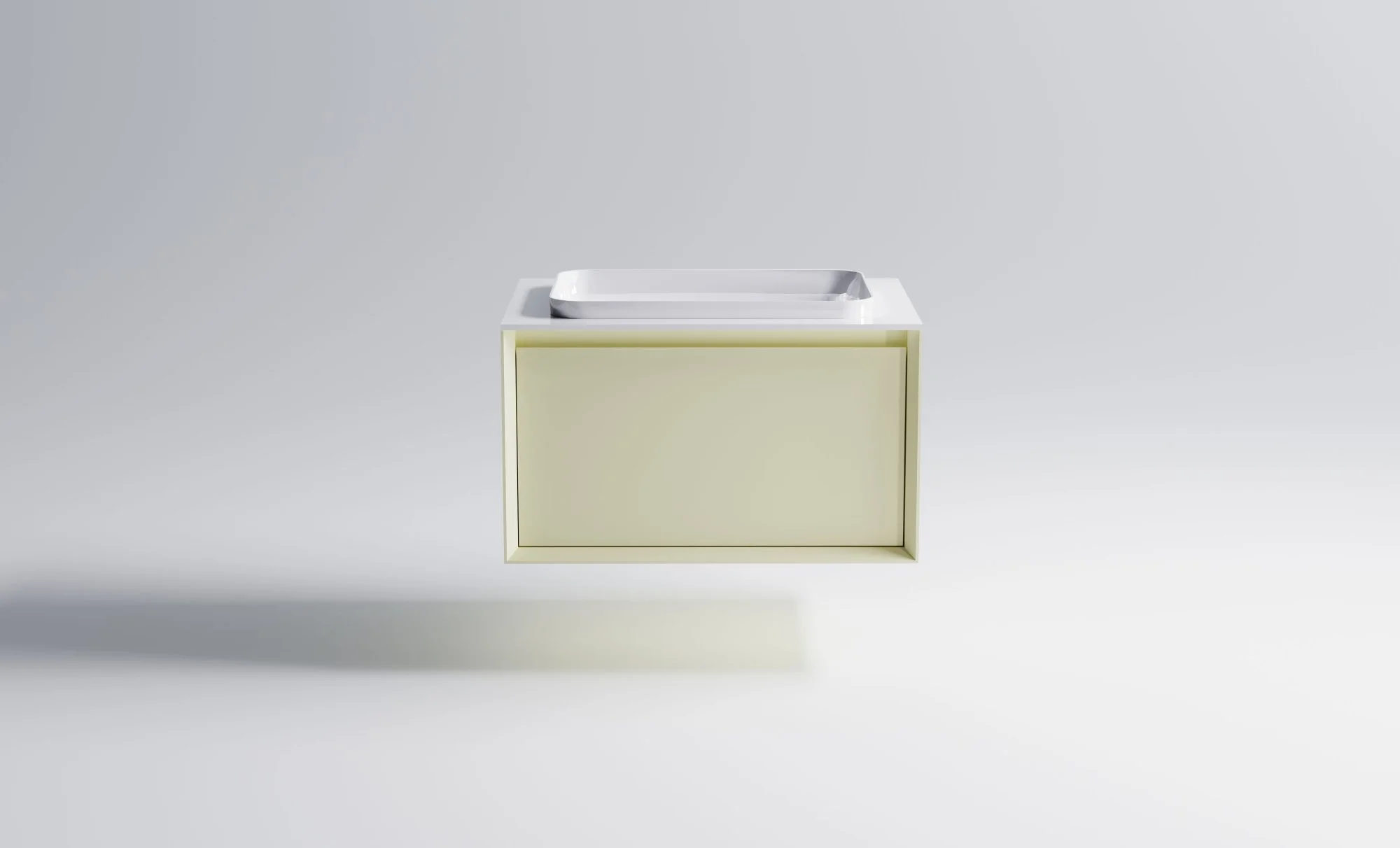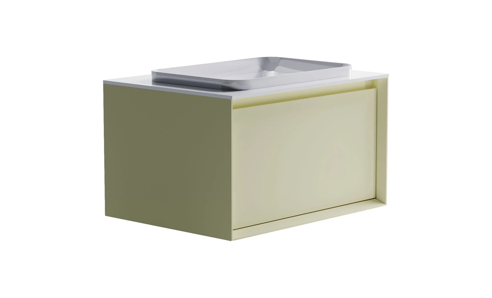 Тумба под раковину Фрейм 700 с 1 ящиком бежевый (RAL1013 матовый) + Столешница "Фрейм" 700 мм + Раковина "Антарес" 55х38 (30мм над уровнем столешницы)