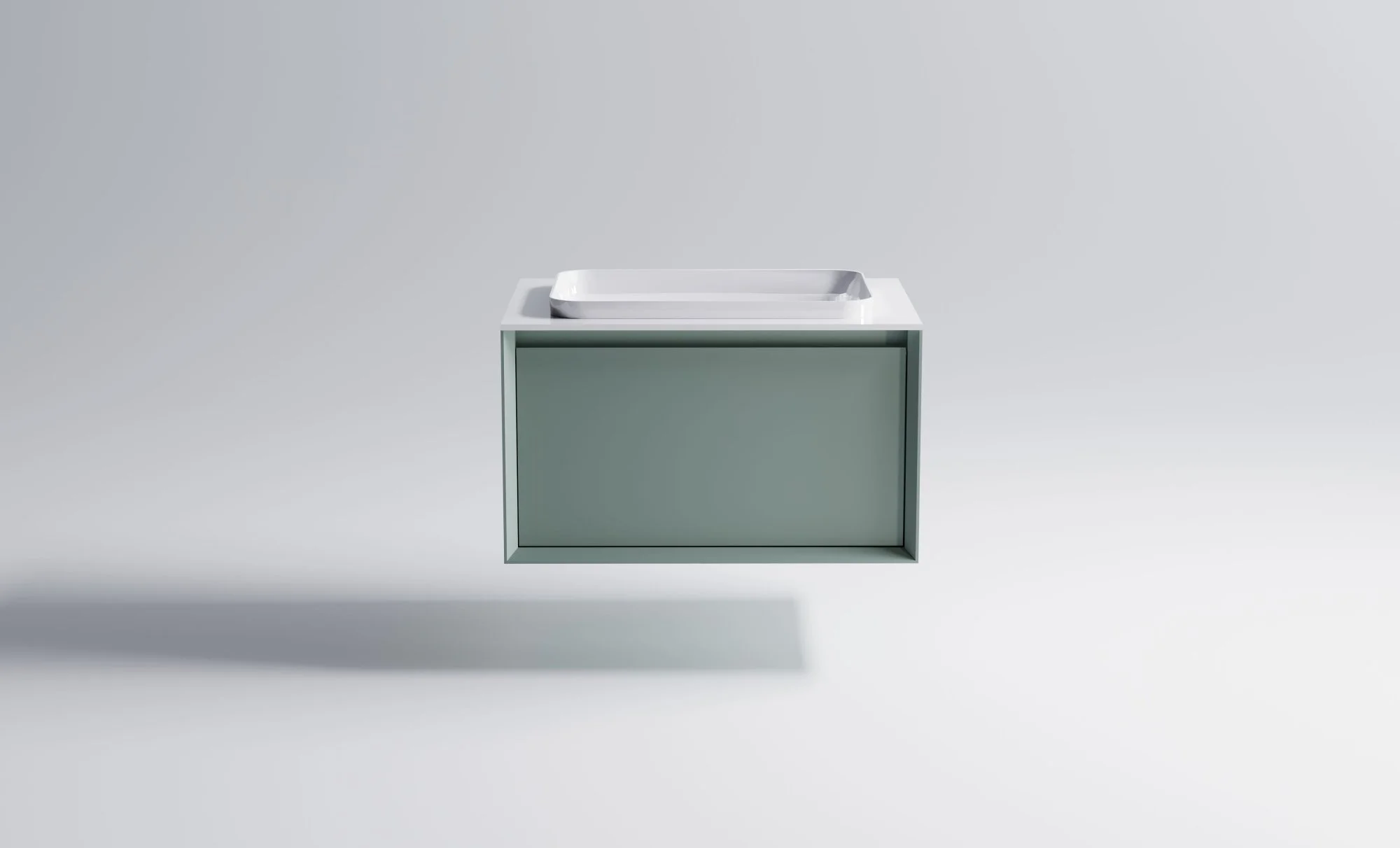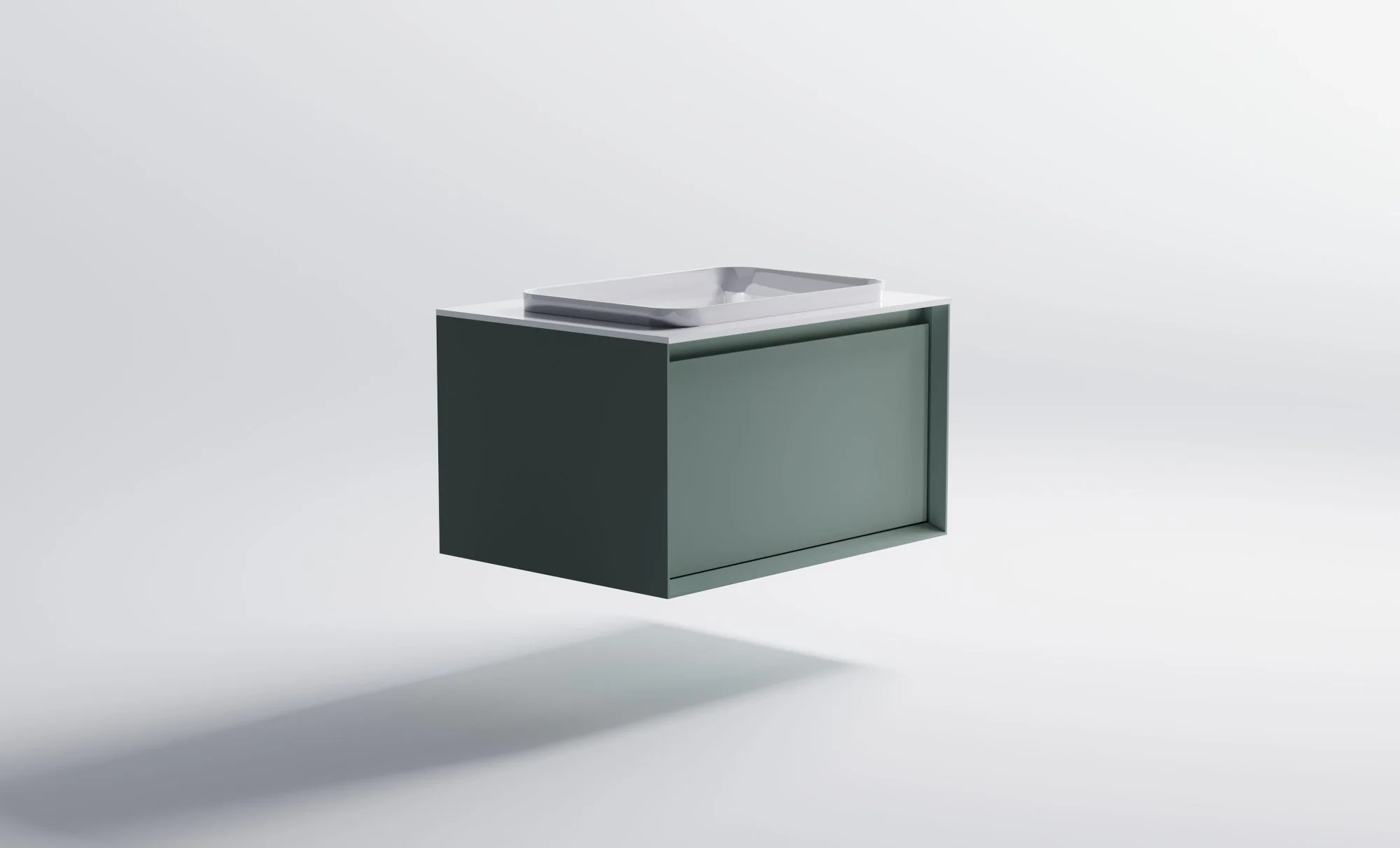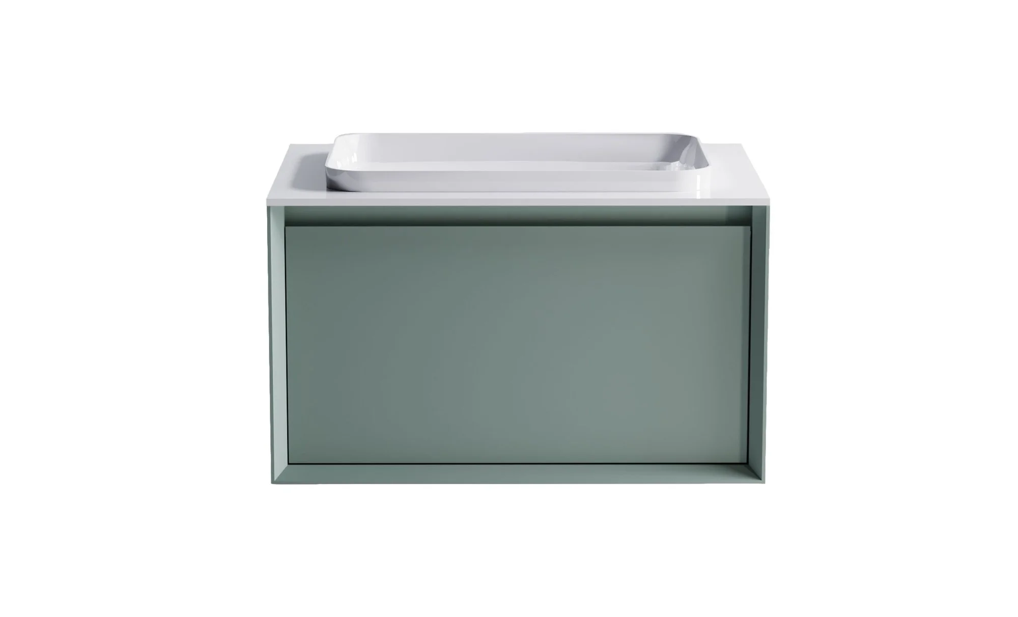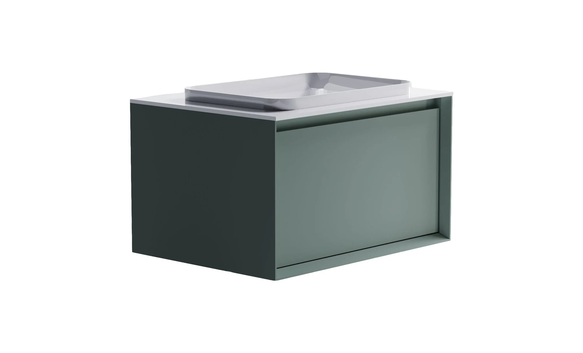 Тумба под раковину Фрейм 800 с 1 ящиком зеленый (NCS S 3005-b80g матовый) + Столешница "Фрейм" 800 мм+ Раковина "Антарес" 55х38 (30мм над уровнем столешницы)