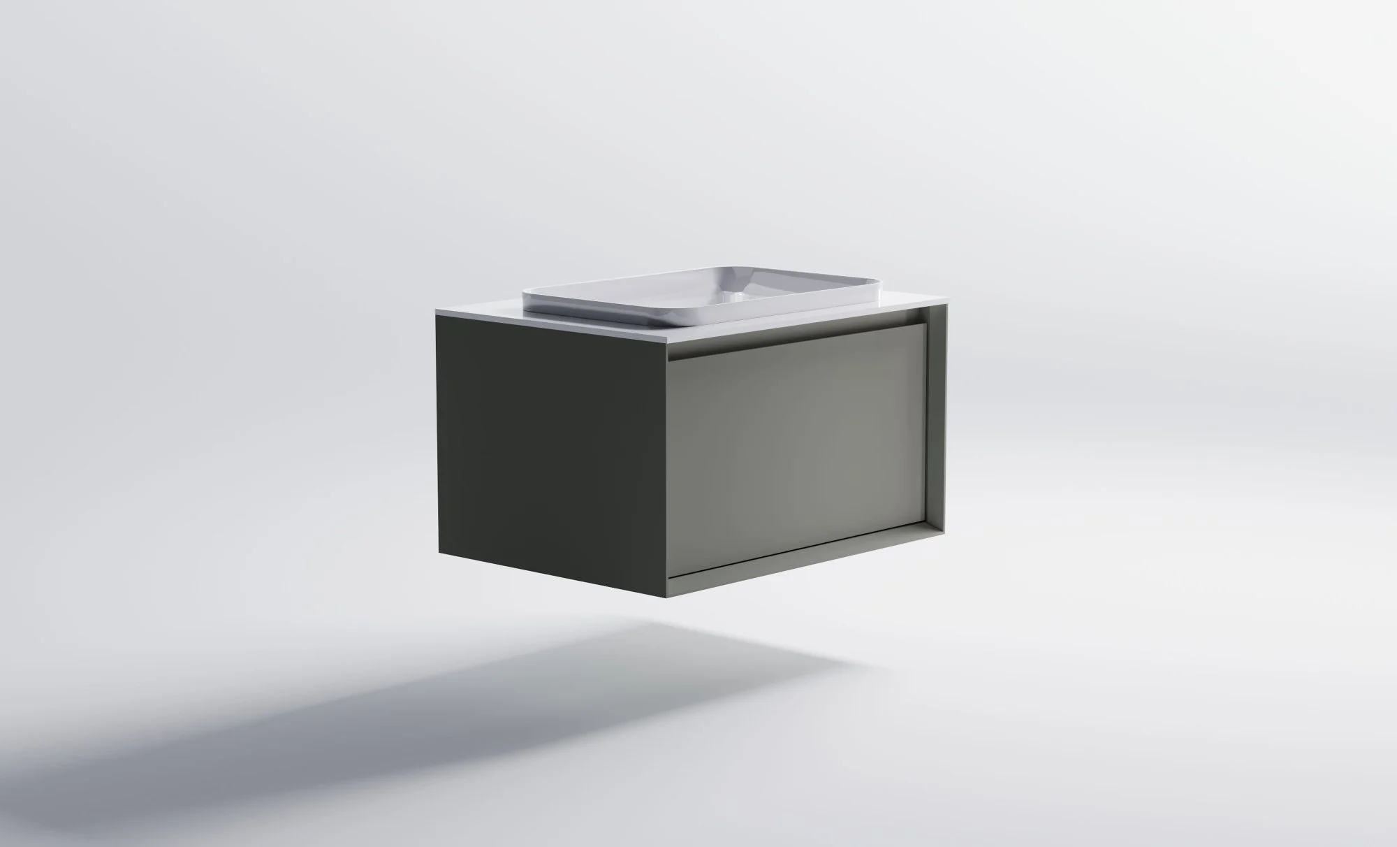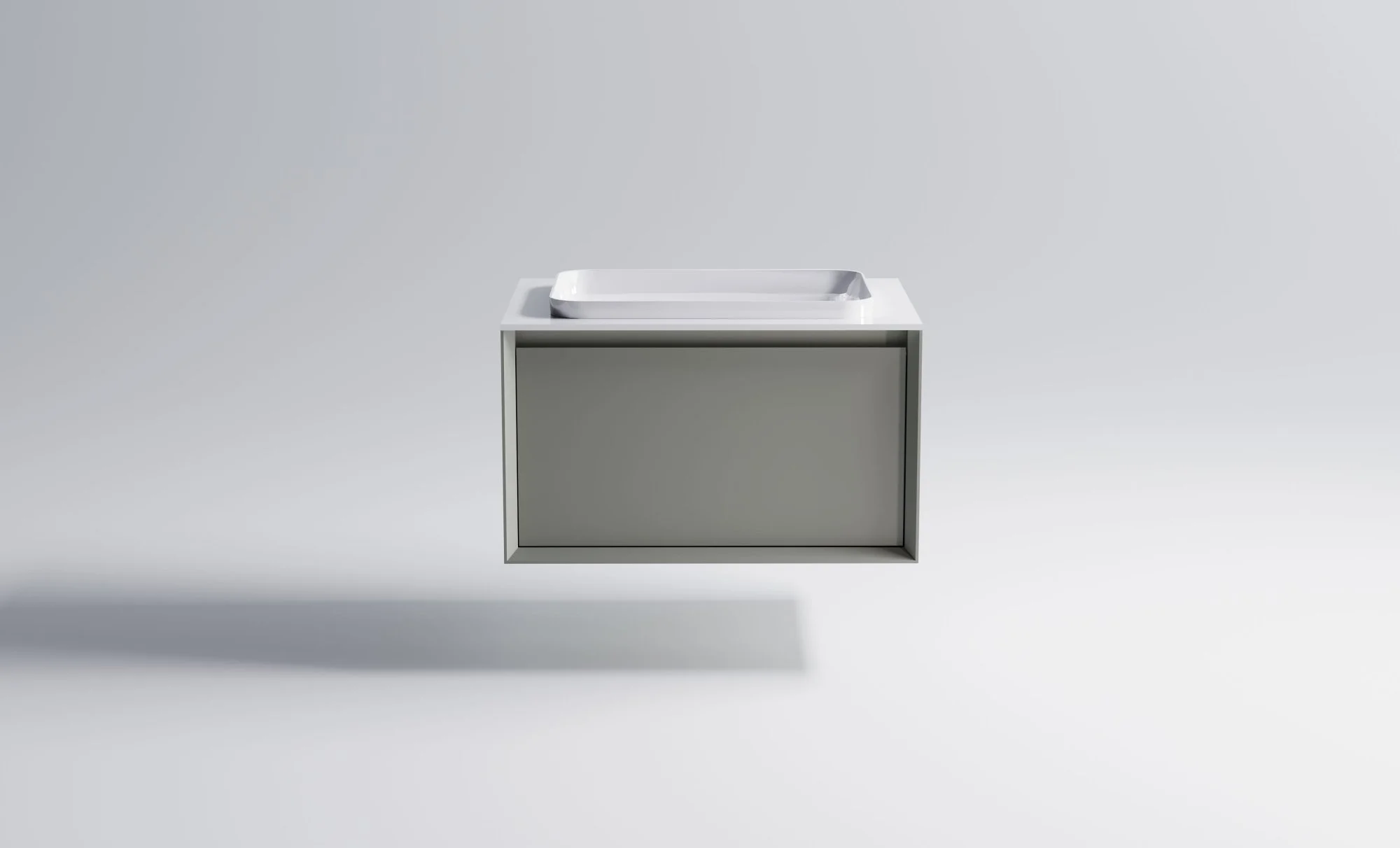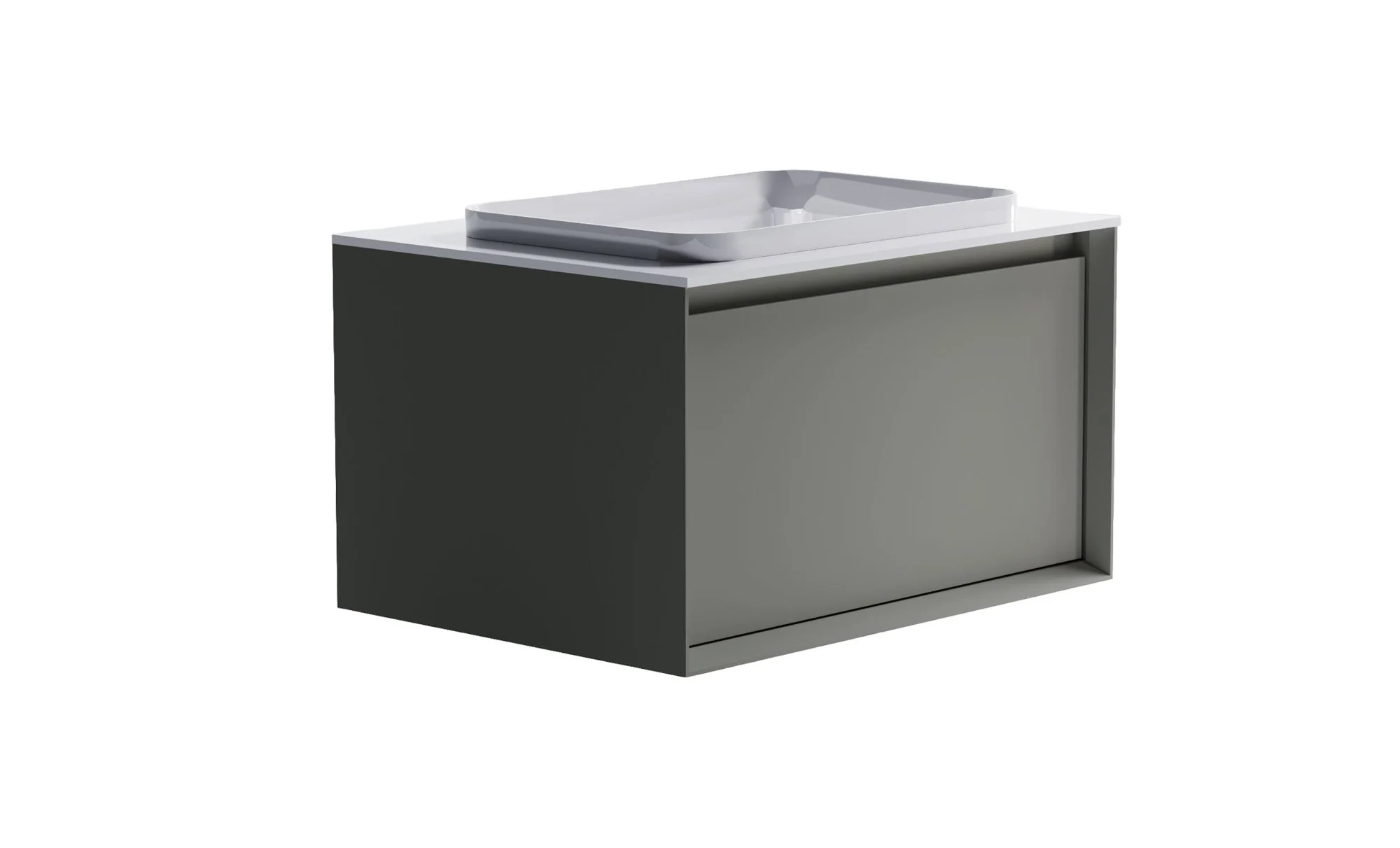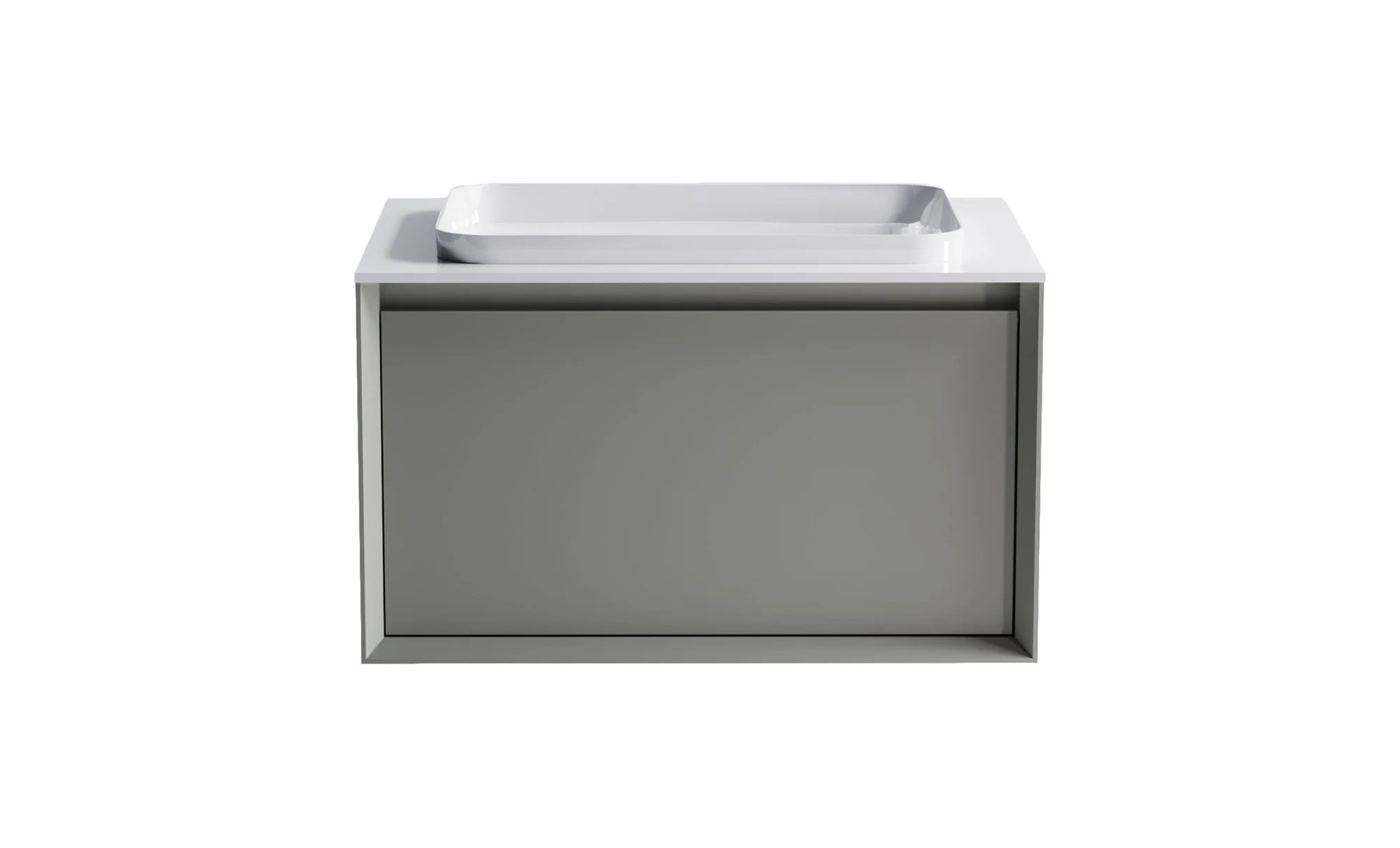 Тумба под раковину Фрейм 800 с 1 ящиком серо-бежевый (NCS S 3502-y матовый) + Столешница "Фрейм" 800 мм+ Раковина "Антарес" 55х38 (30мм над уровнем столешницы)