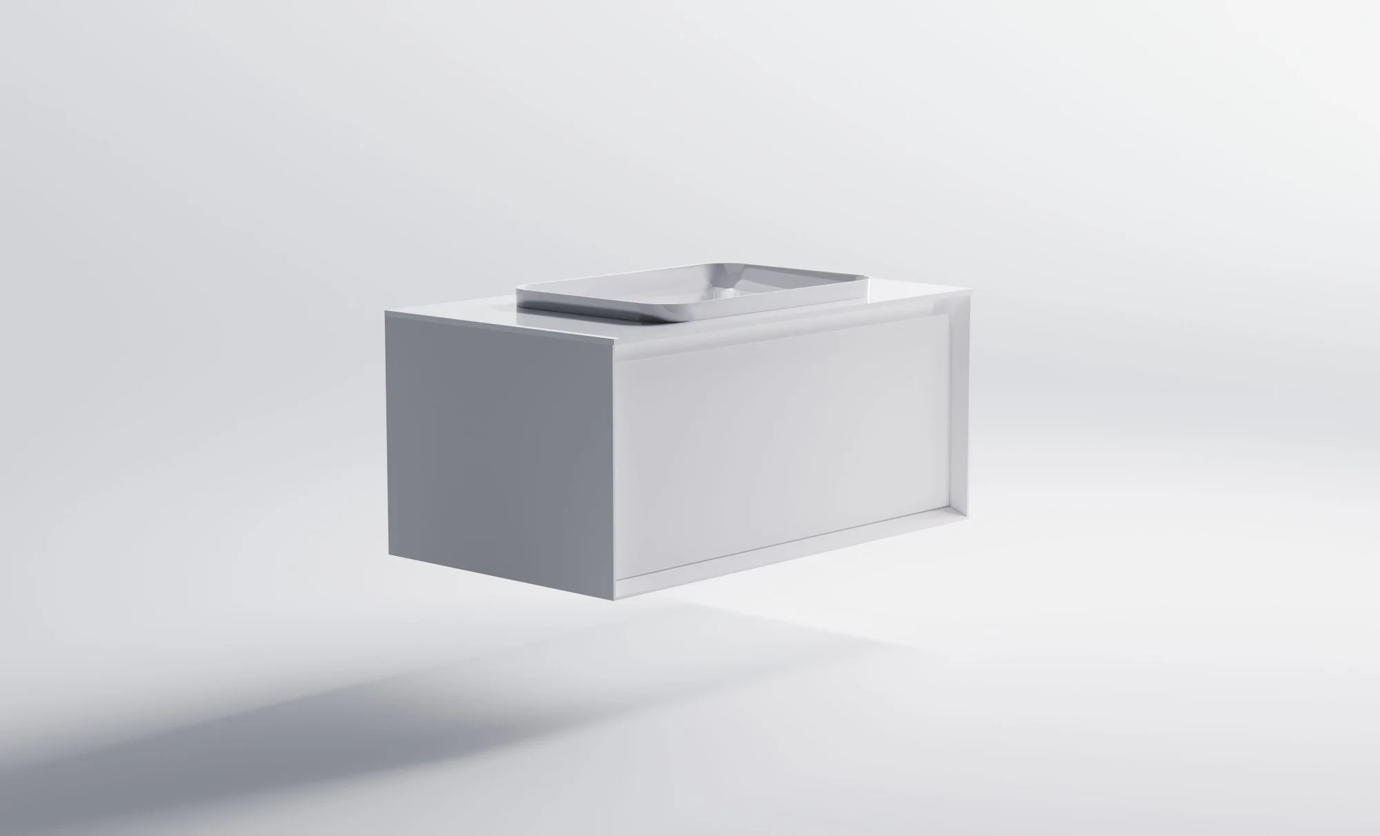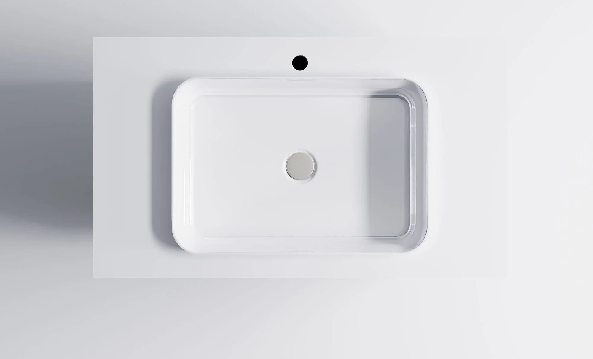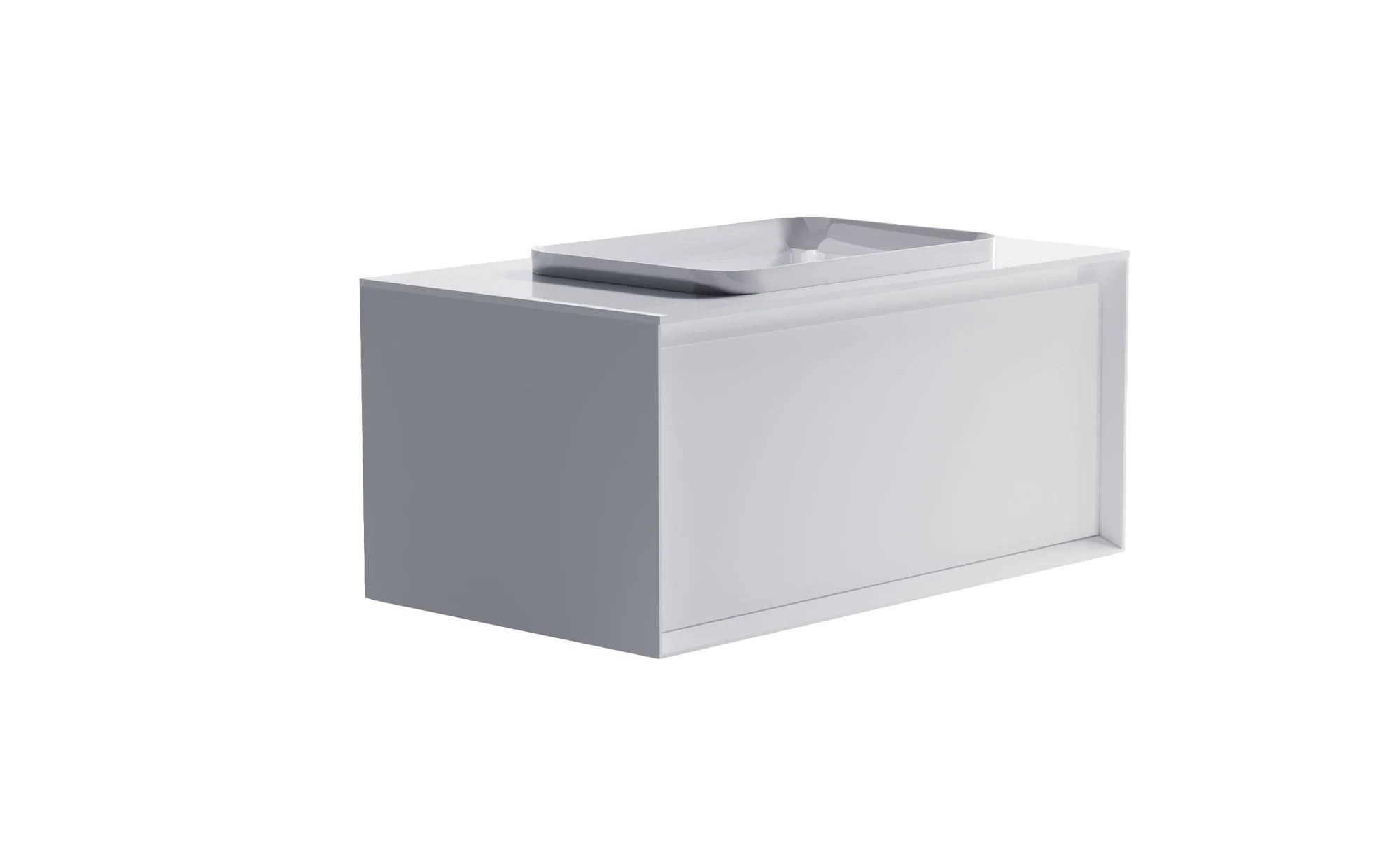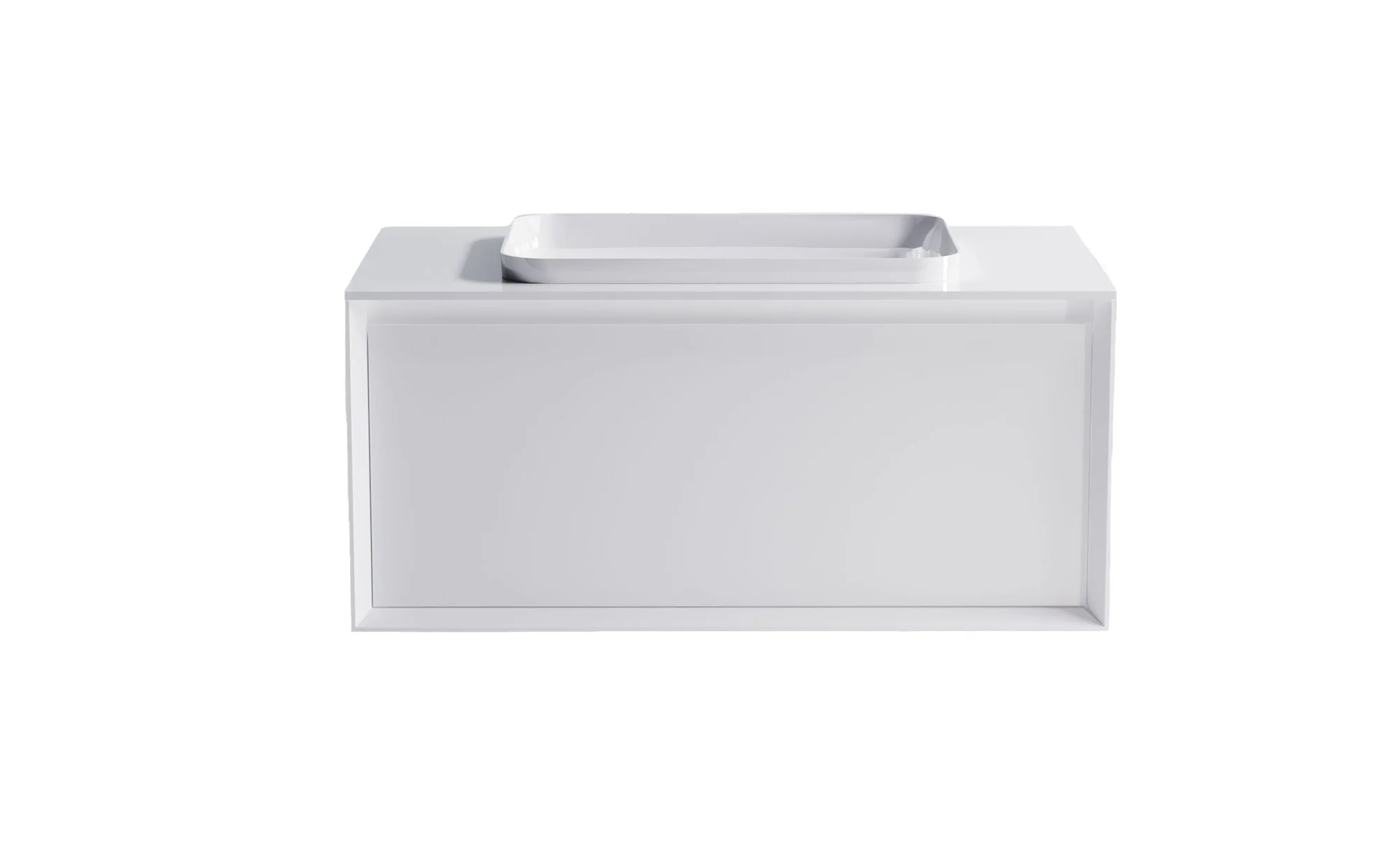 Тумба под раковину Фрейм 1000 с 1 ящиком белый матовый + Столешница "Фрейм" 1000 мм + Раковина "Антарес" 55х38 (30мм над уровнем столешницы)