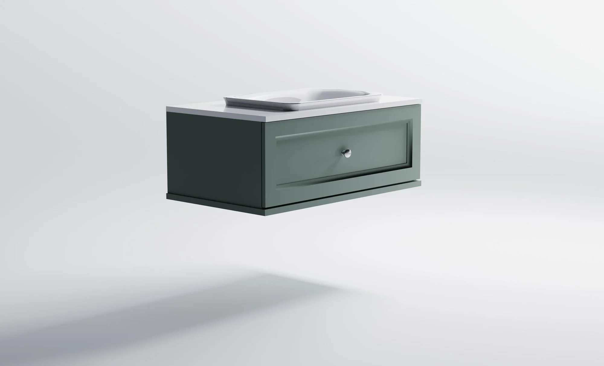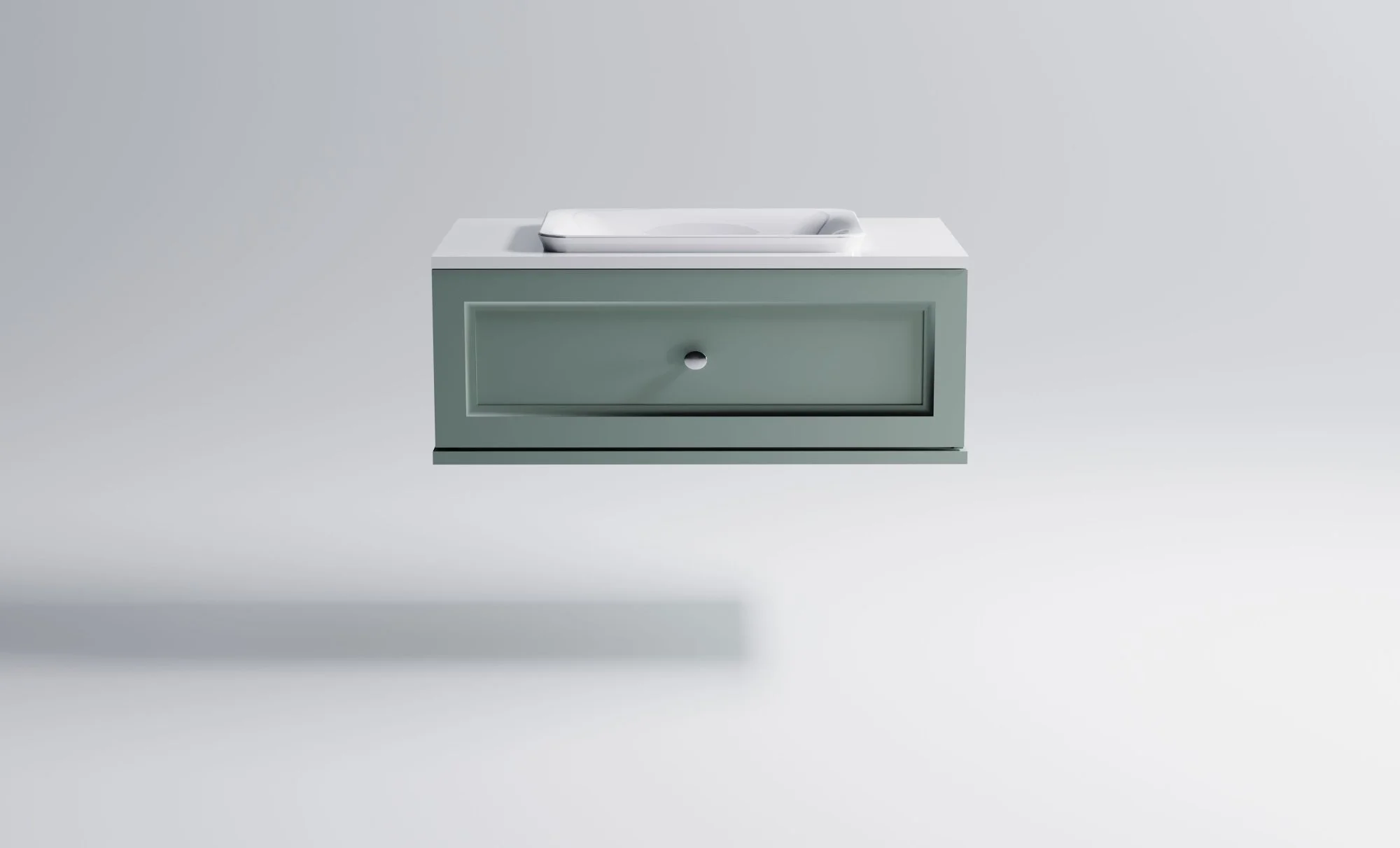 Тумба под раковину Классик 100 с 1 ящиком зеленый (NCS S 3005-B80G матовый) + Столешница "Классик" 1000 мм + Раковина "Ретро"