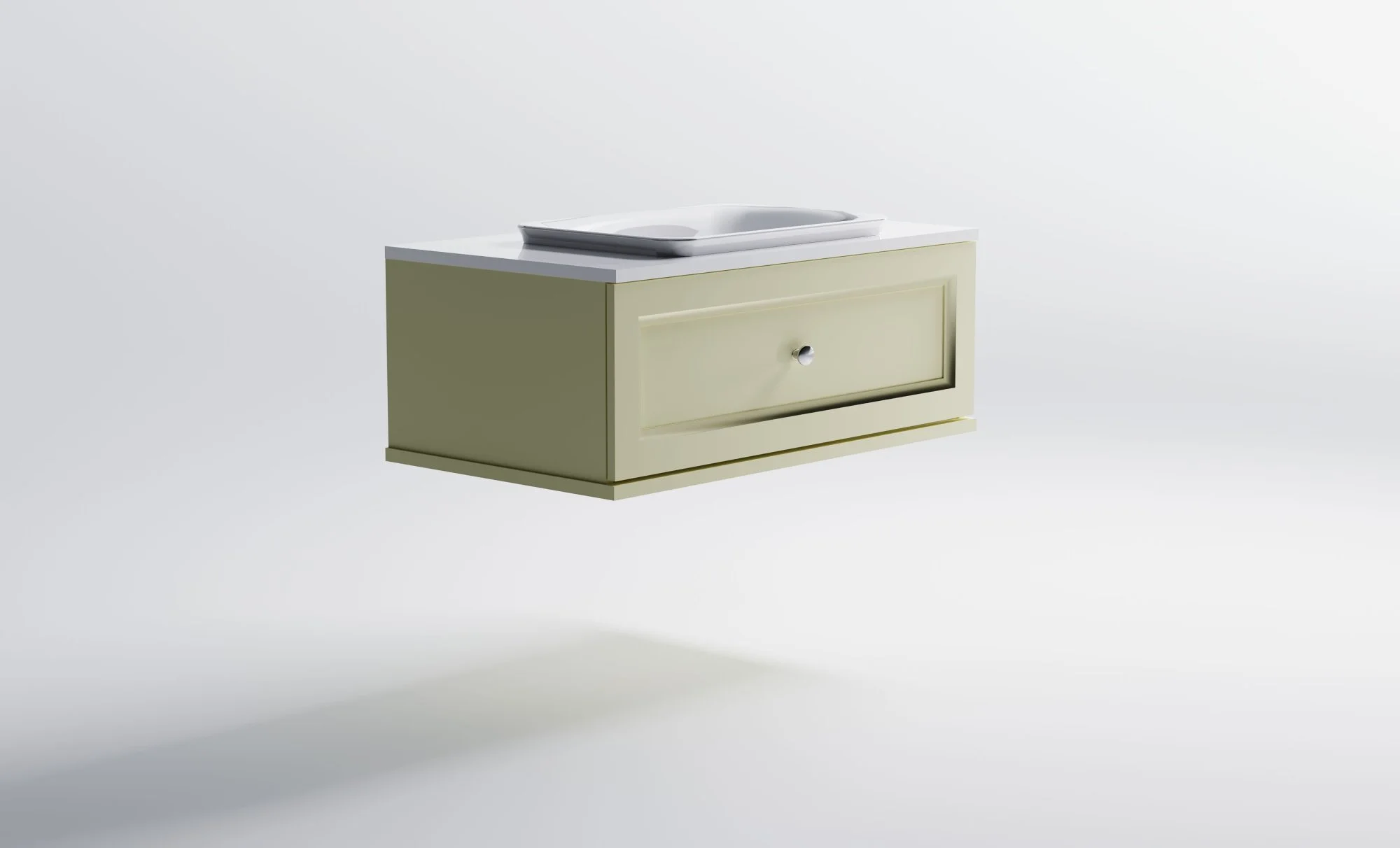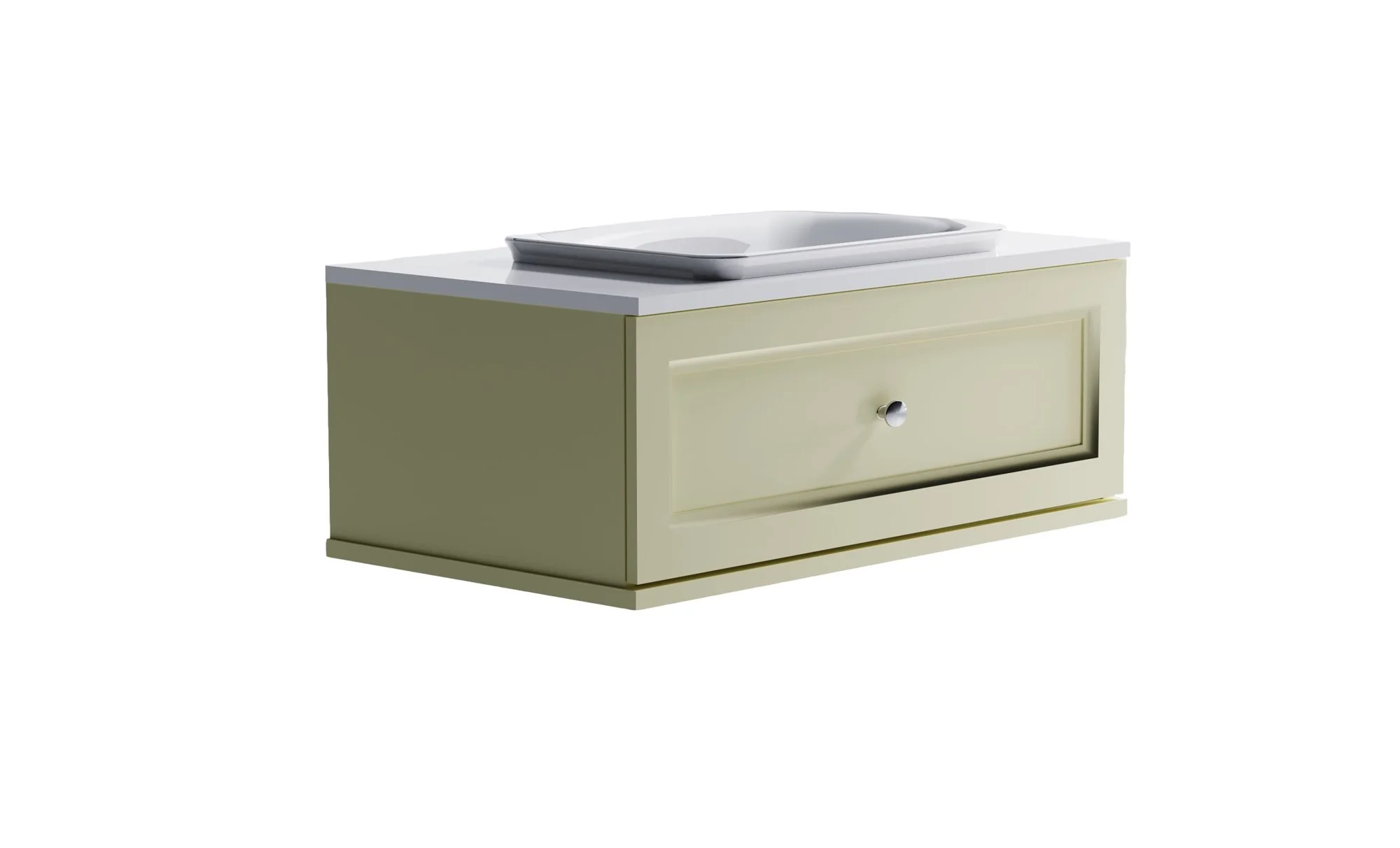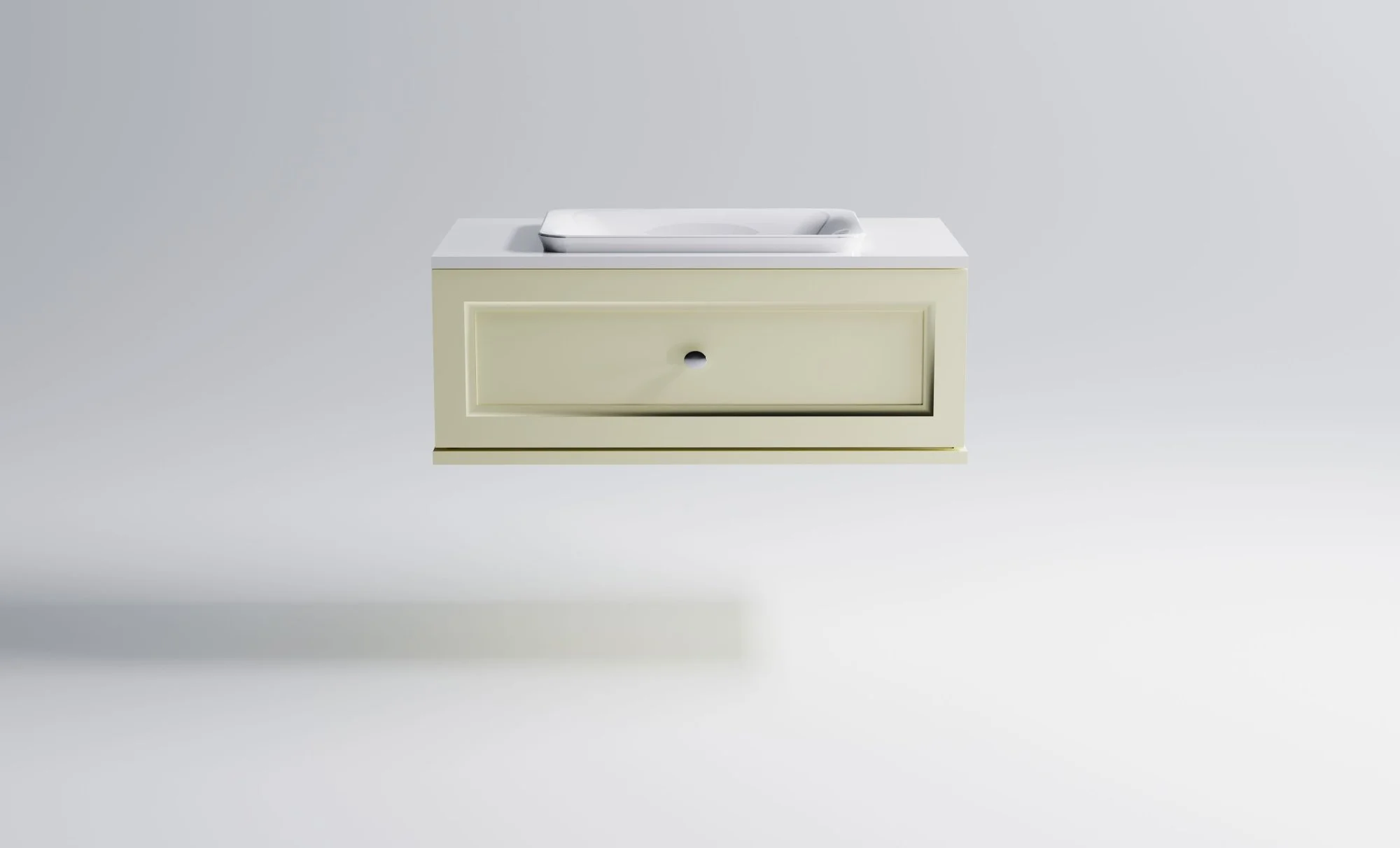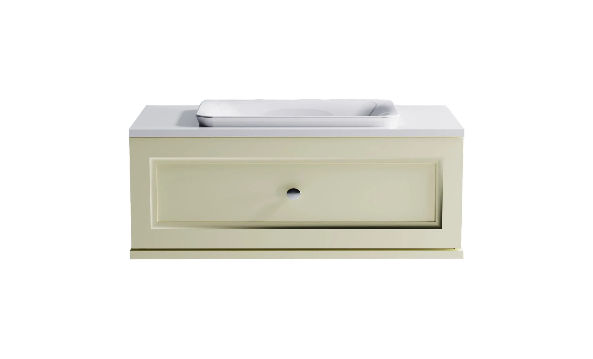 Тумба под раковину Классик 100 с 1 ящиком бежевый (RAL1013 матовый) + Столешница "Классик" 1000 мм + Раковина "Ретро"