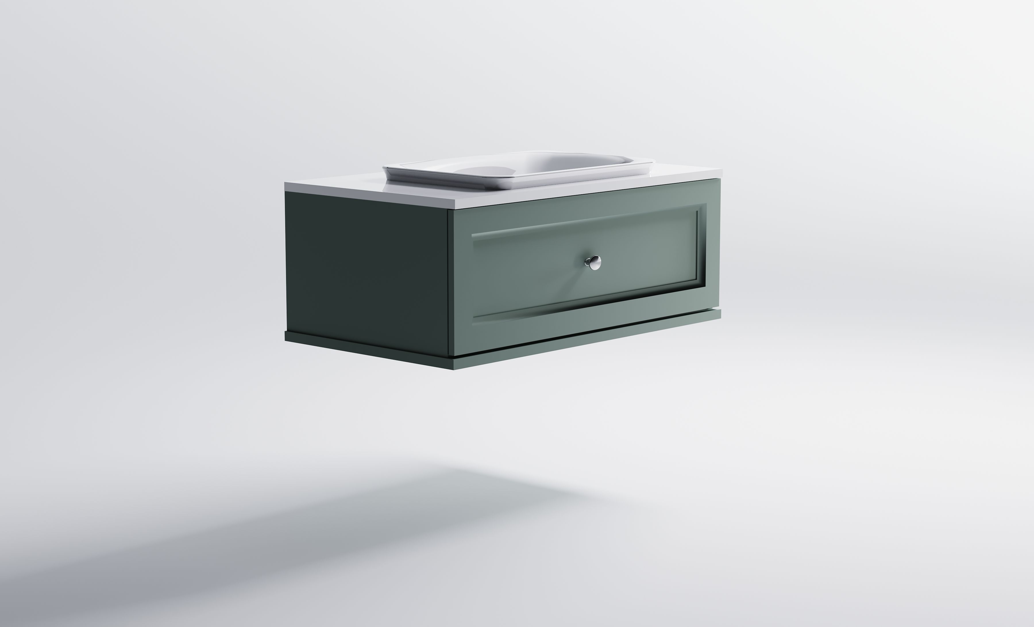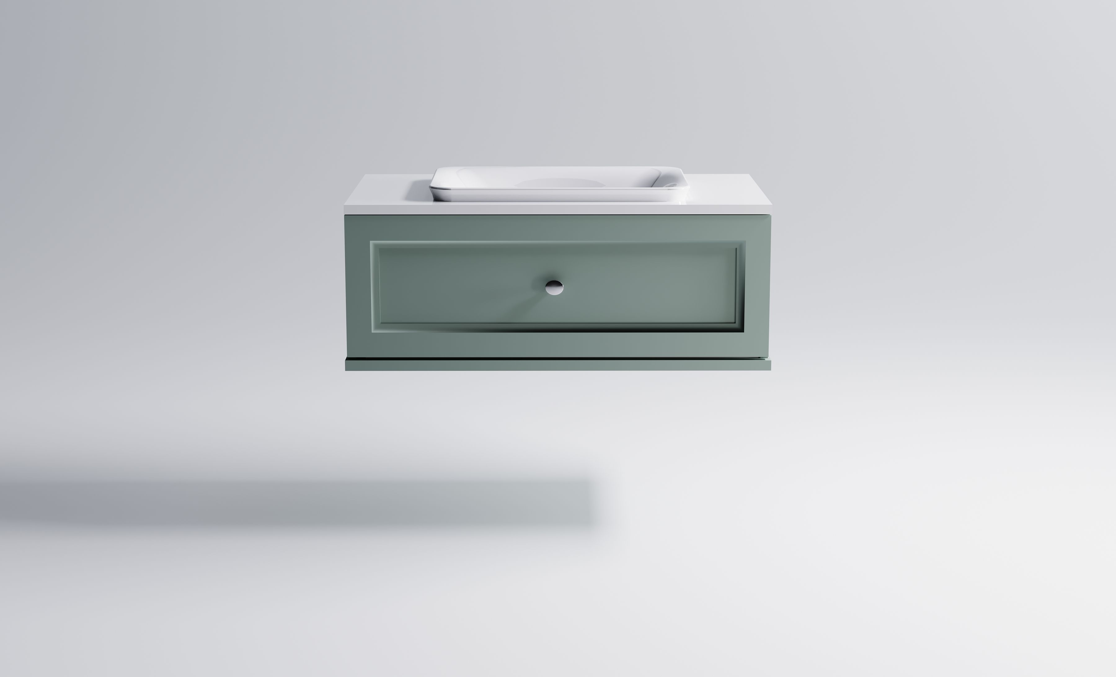 Тумба под раковину Классик 90 с 1 ящиком зеленый (NCS S 3005-B80G матовый) + Столешница "Классик" 900 мм + Раковина "Ретро"