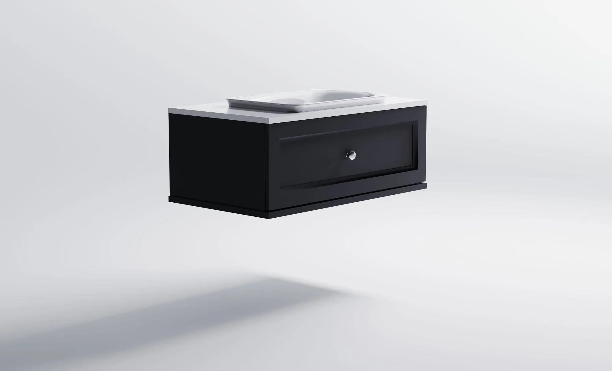 Тумба под раковину Классик 90 с 1 ящиком темно-серый (RAL7024 матовый) + Столешница "Классик" 900 мм + Раковина "Ретро"