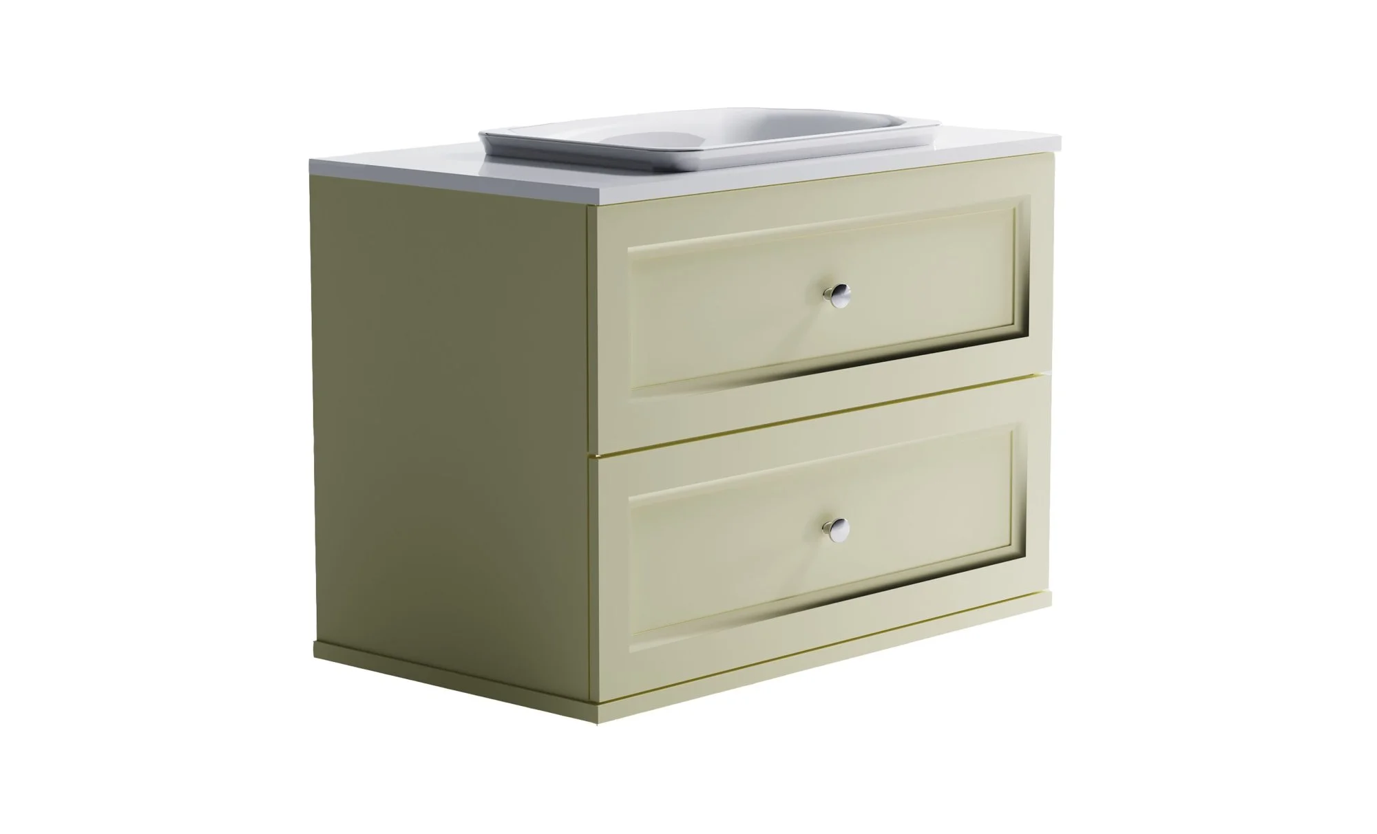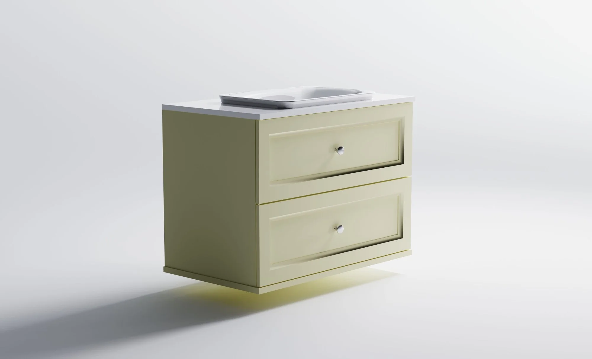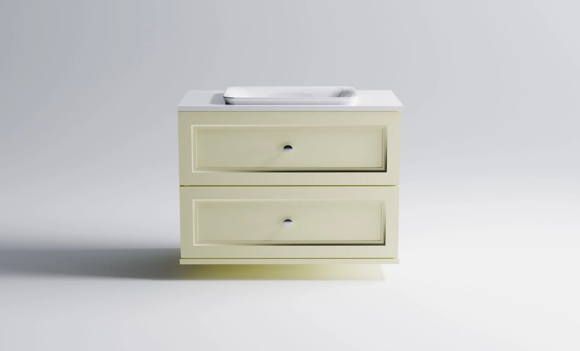 Тумба под раковину Классик 90 с 2 ящиками бежевый (RAL1013 матовый) + Столешница "Классик" 900 мм + Раковина "Ретро"