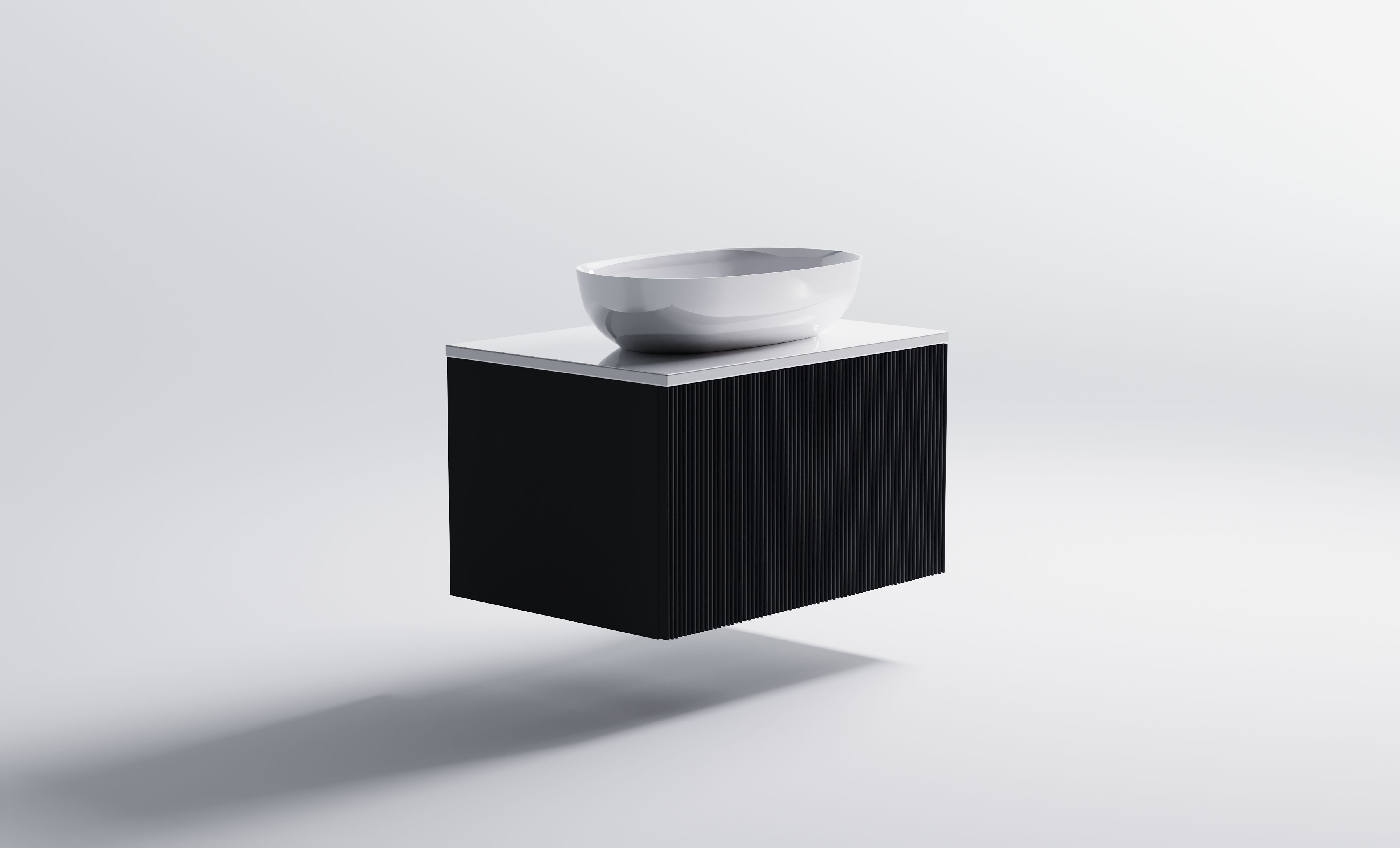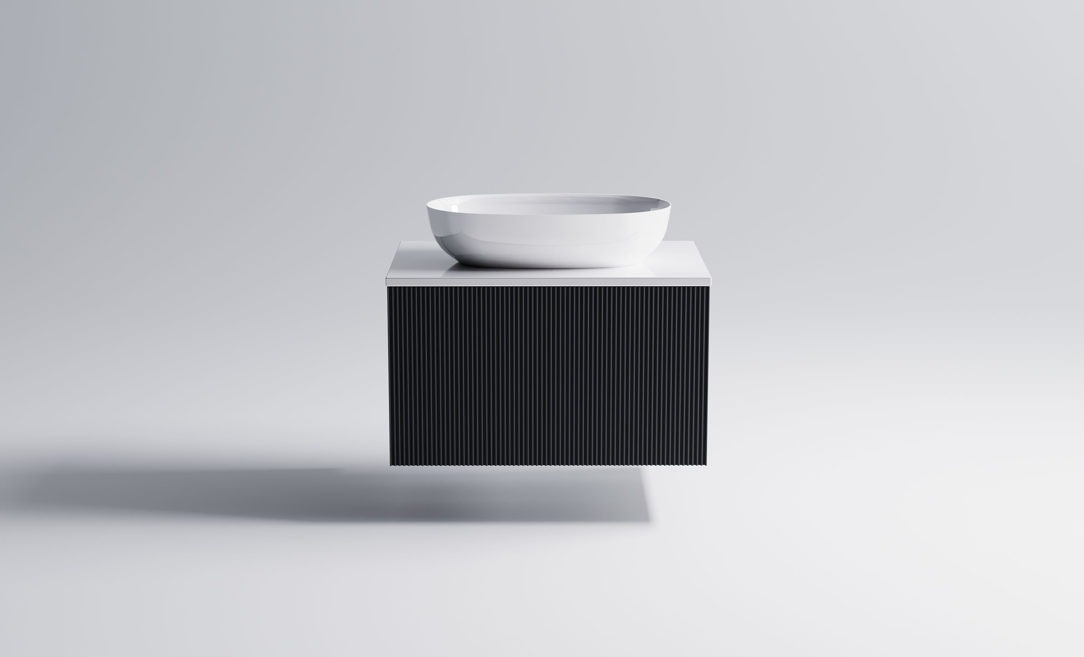 Тумба под раковину М-40 700х400 мм с 1 ящиком темно-серый (RAL7024 матовый) + Столешница "М-40" 700 мм + Раковина "Атрия" 55х35 + фрезеровка волна вертикальная