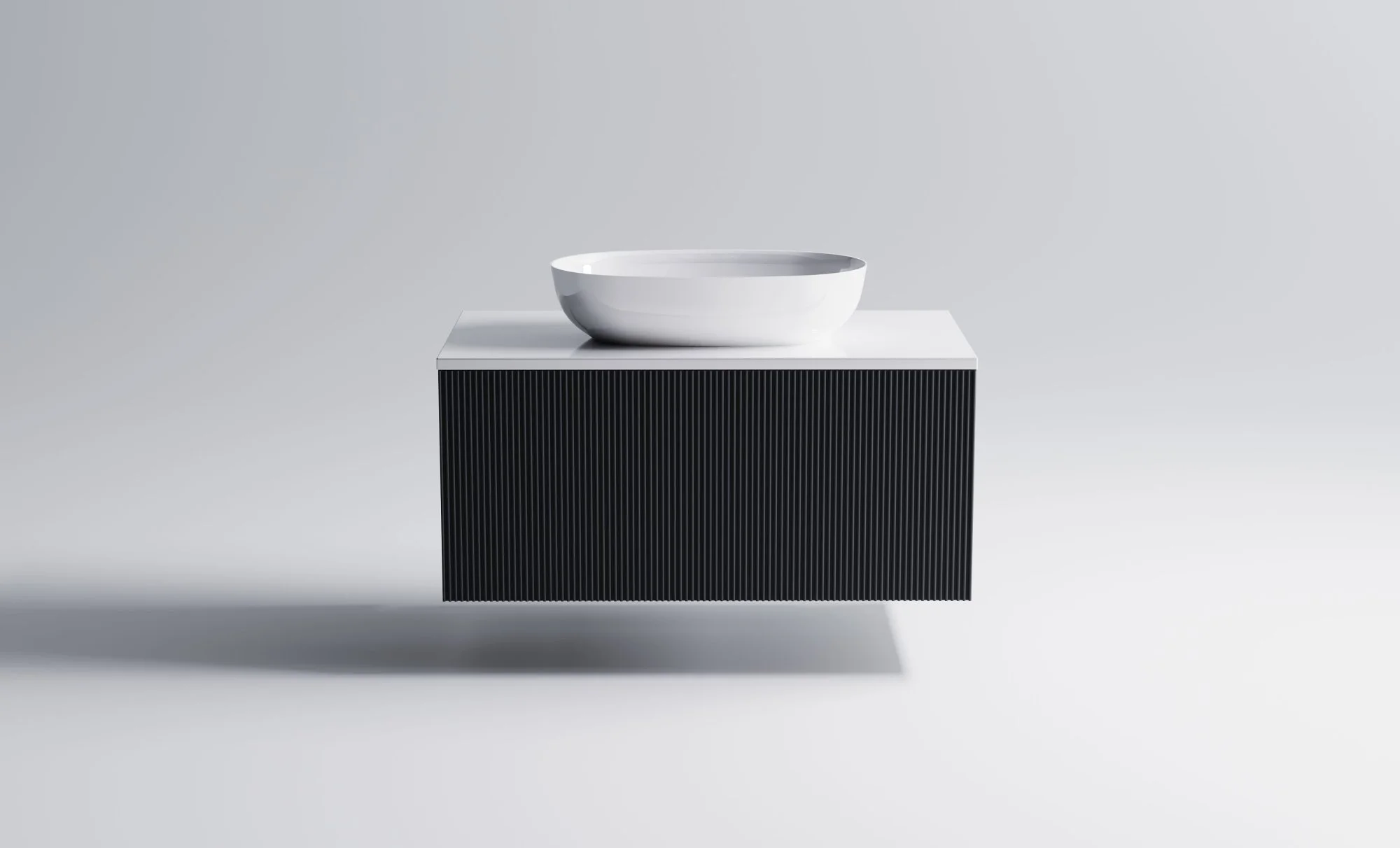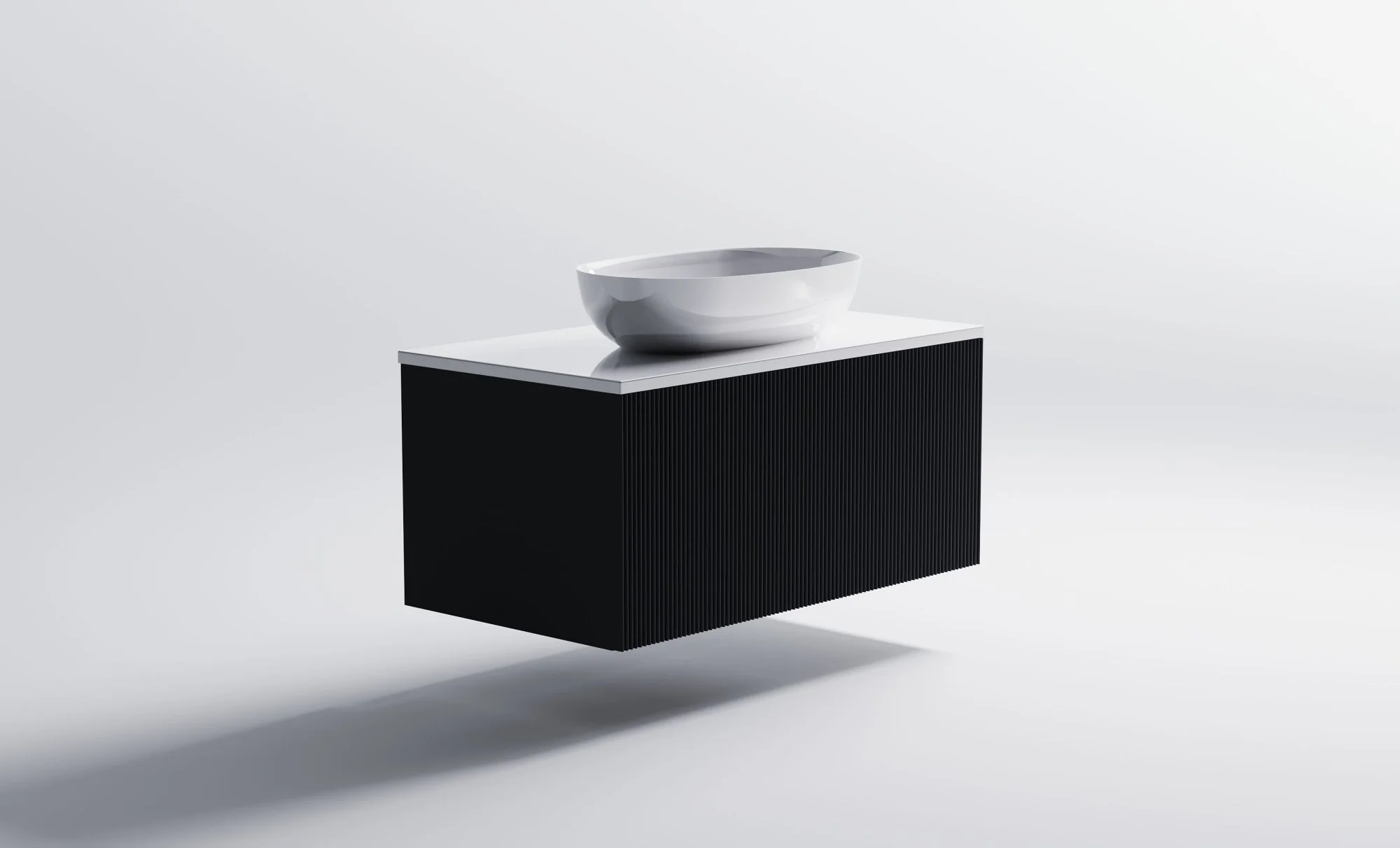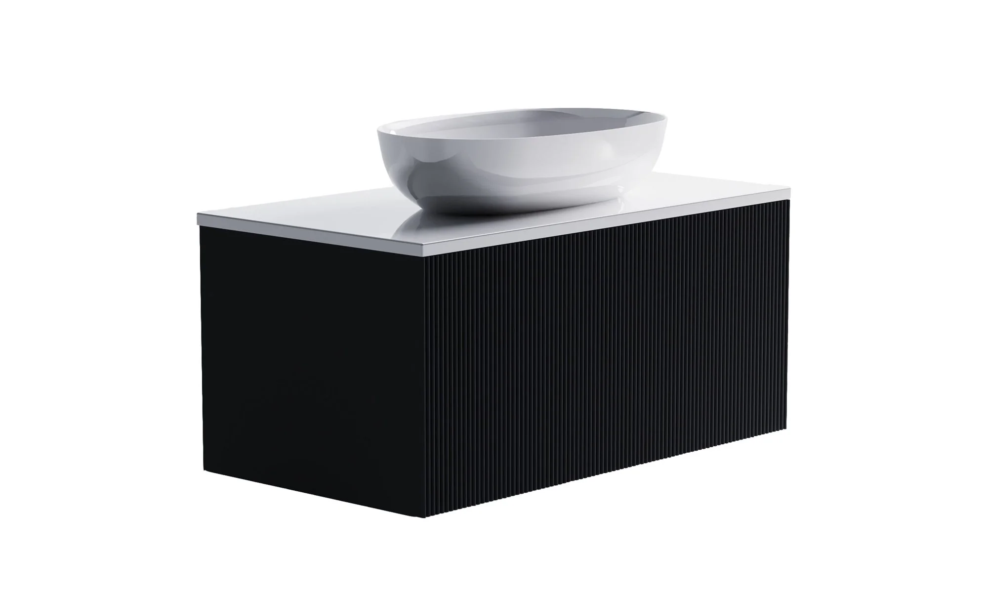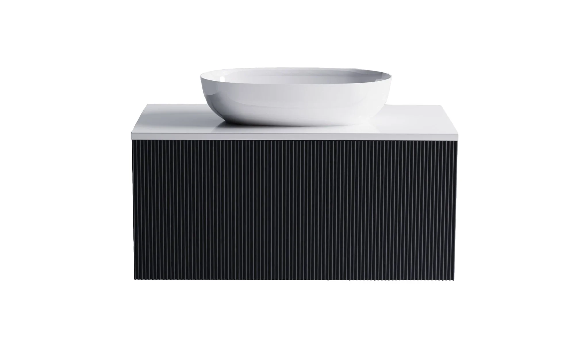 Тумба под раковину М-40 900х400 мм с 1 ящиком темно-серый (RAL7024 матовый) + Столешница "М-40" 900 мм + Раковина "Атрия" 55х35 + фрезеровка волна вертикальная