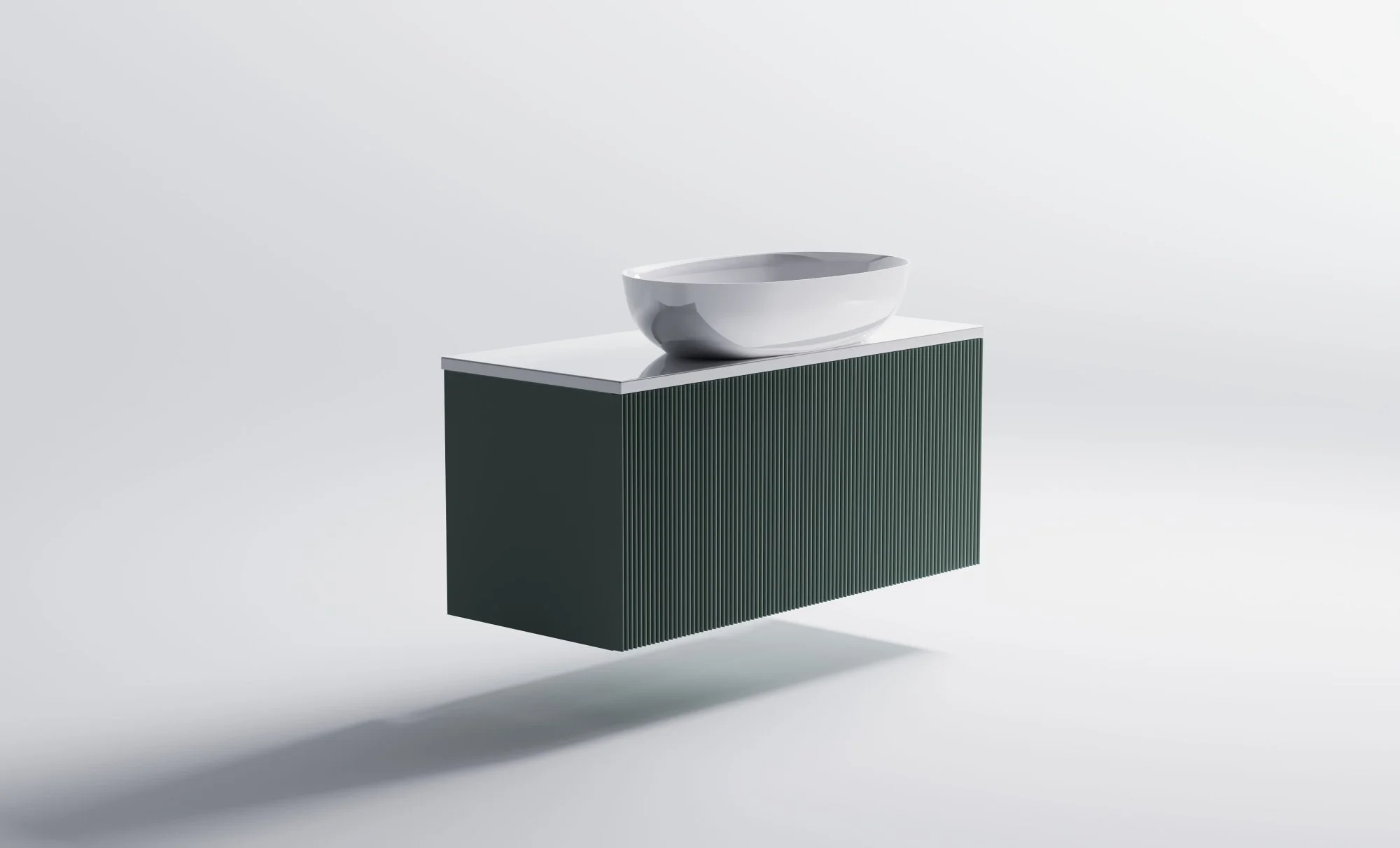 Тумба под раковину М-40 Slim 1000х400 мм с 1 ящиком зеленый (NCS S 3005-B80G матовый)+ Столешница "М-40 Slim" 1000 мм + Раковина "Атрия" 55х35 + фрезеровка волна вертикальная
