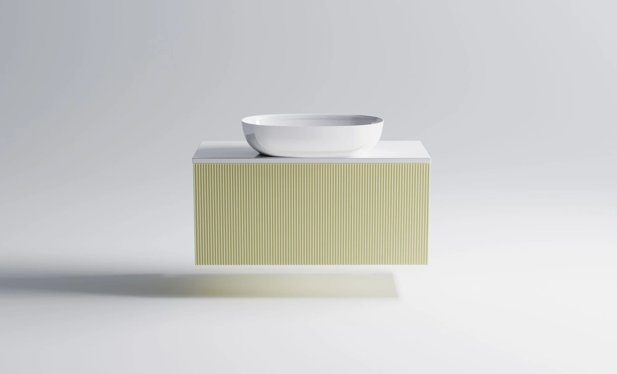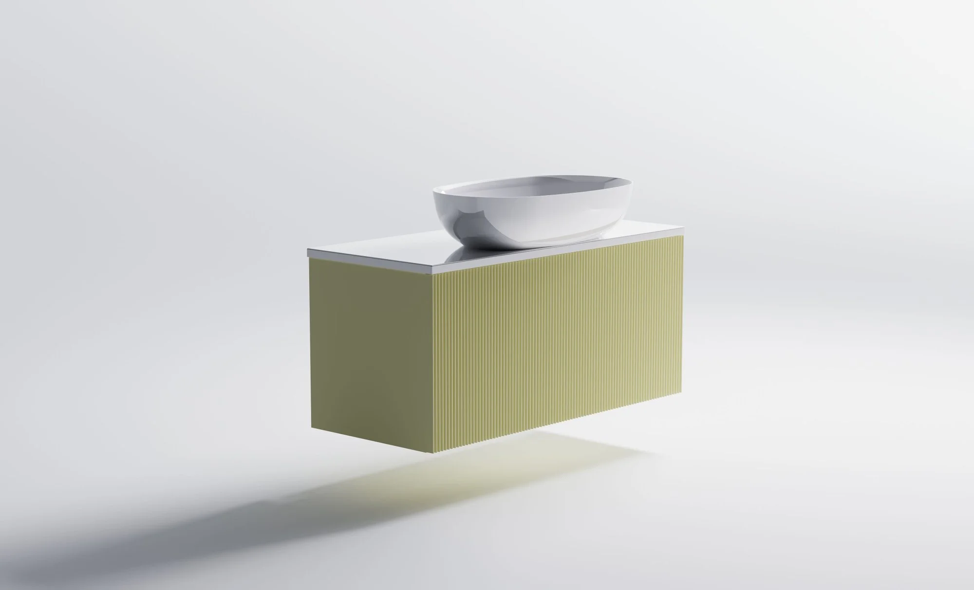 Тумба под раковину М-40 Slim 1000х400 мм с 1 ящиком бежевый (RAL1013 матовый)+ Столешница "М-40 Slim" 1000 мм + Раковина "Атрия" 55х35 + фрезеровка волна вертикальная