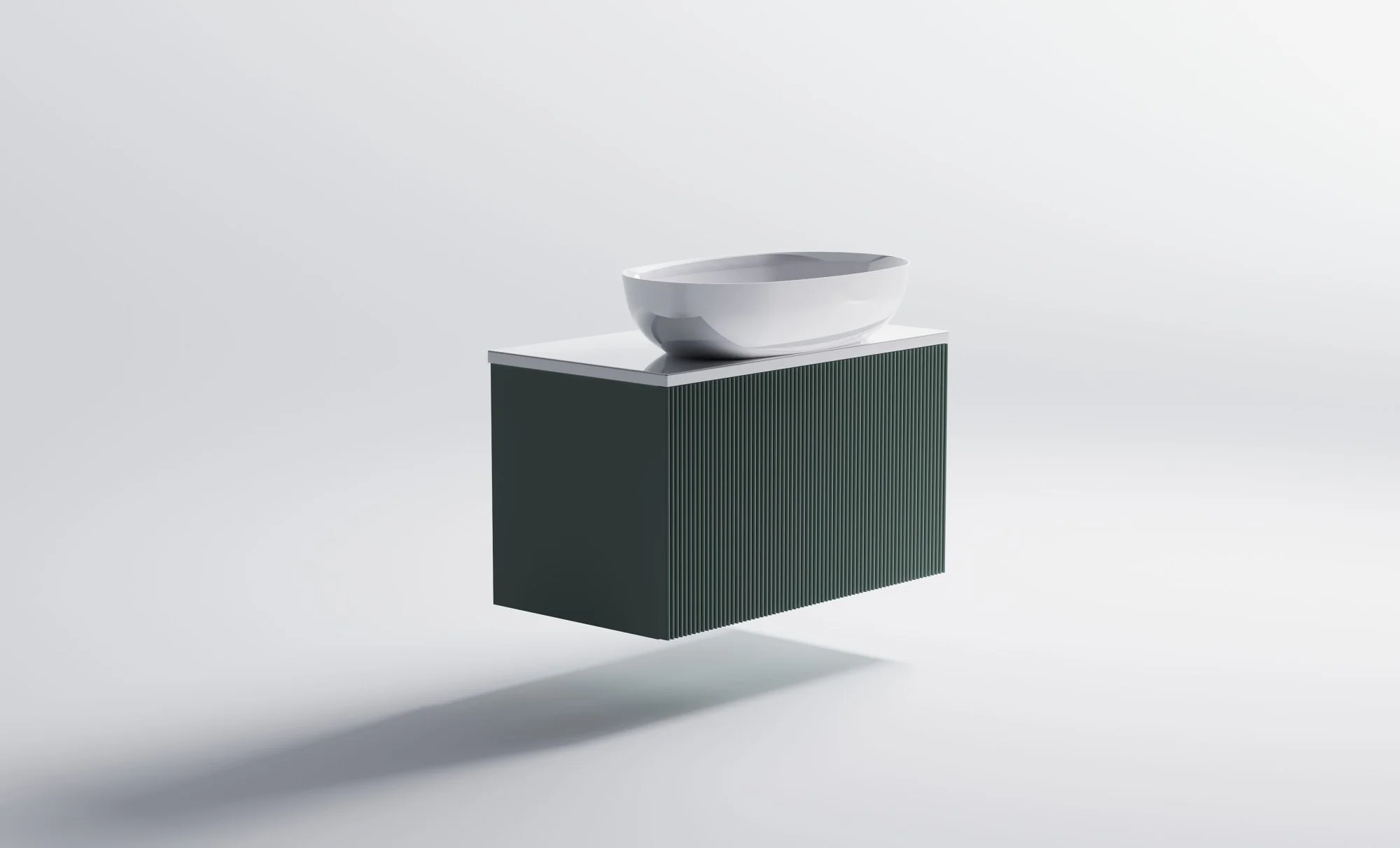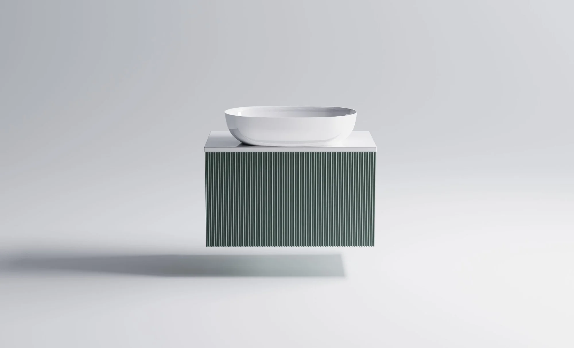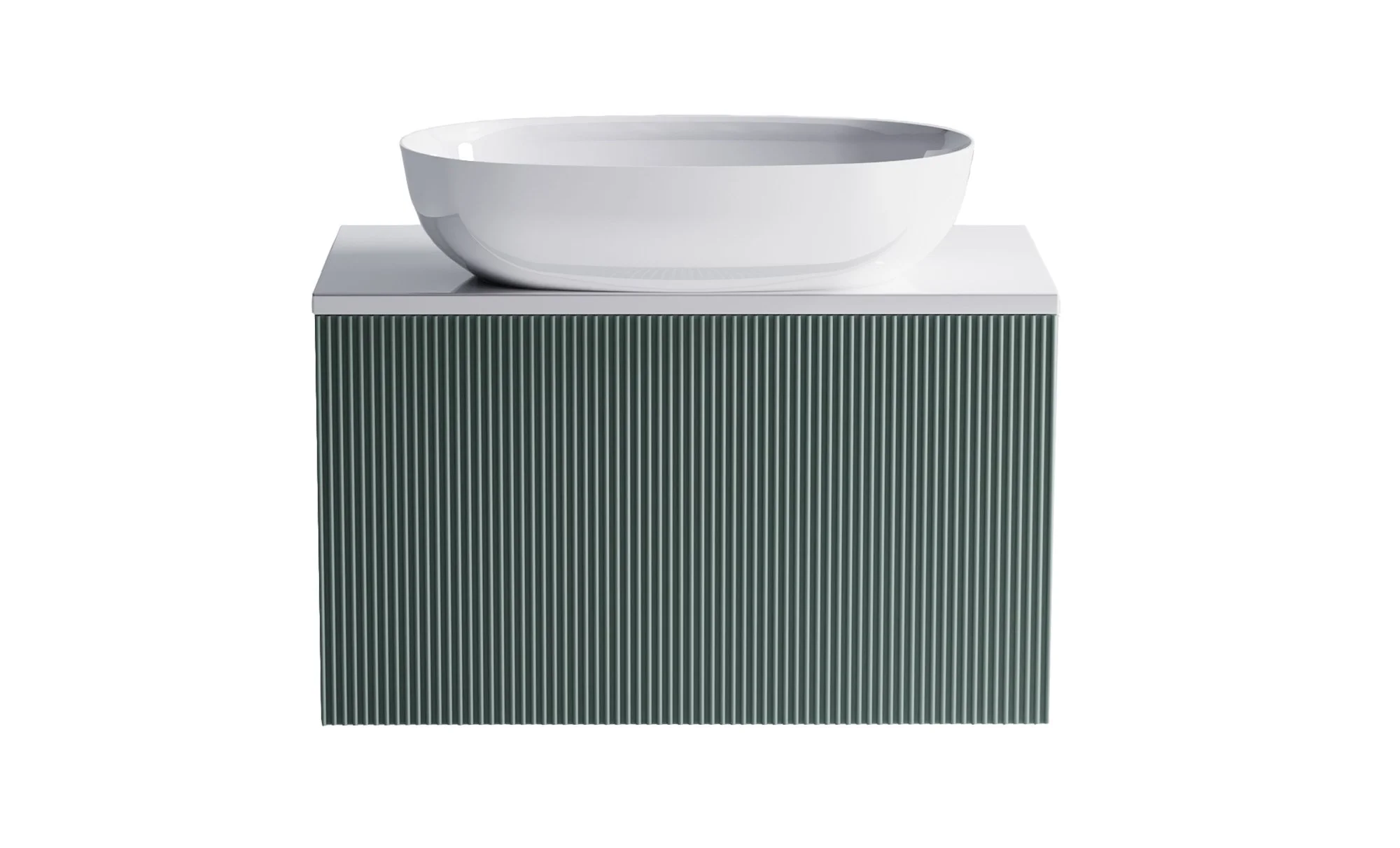 Тумба под раковину М-40 Slim 700х400 мм с 1 ящиком зеленый (NCS S 3005-B80G матовый)+ Столешница "М-40 Slim" 700 мм + Раковина "Атрия" 55х35 + фрезеровка волна вертикальная