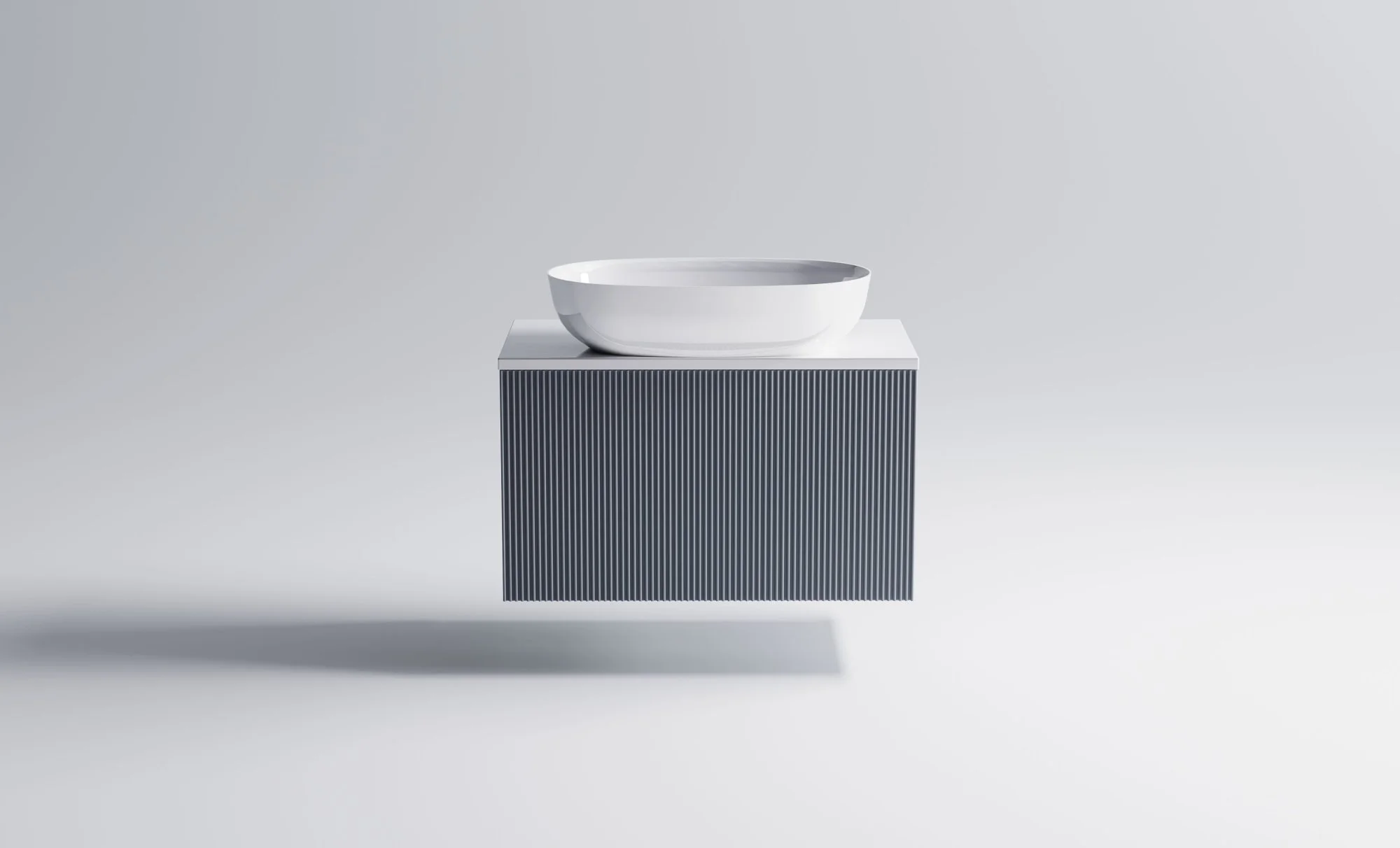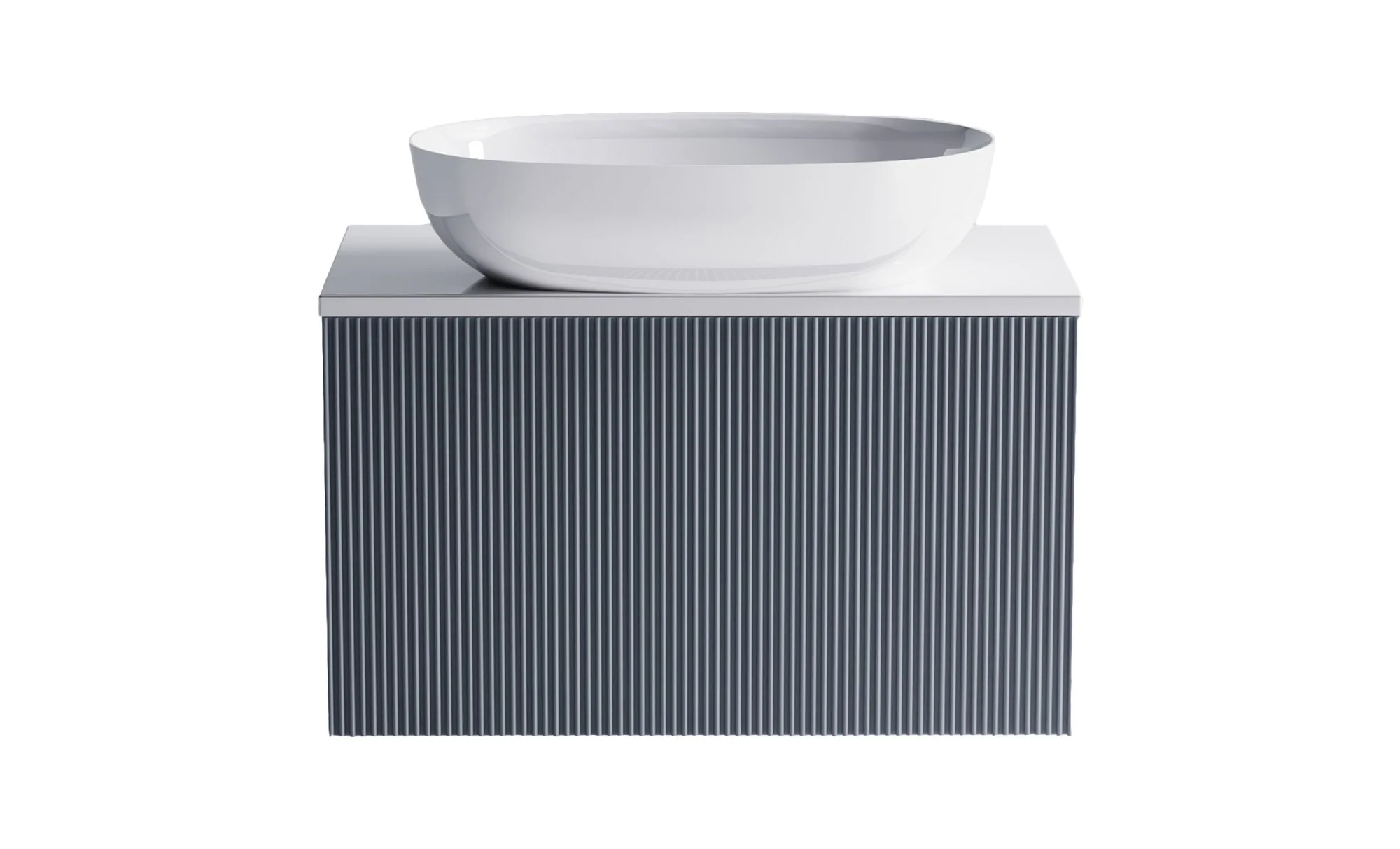 Тумба под раковину М-40 Slim 700х400 мм с 1 ящиком серо-голубой (NCS S 3005-R80B матовый)+ Столешница "М-40 Slim" 700 мм + Раковина "Атрия" 55х35 + фрезеровка волна вертикальная