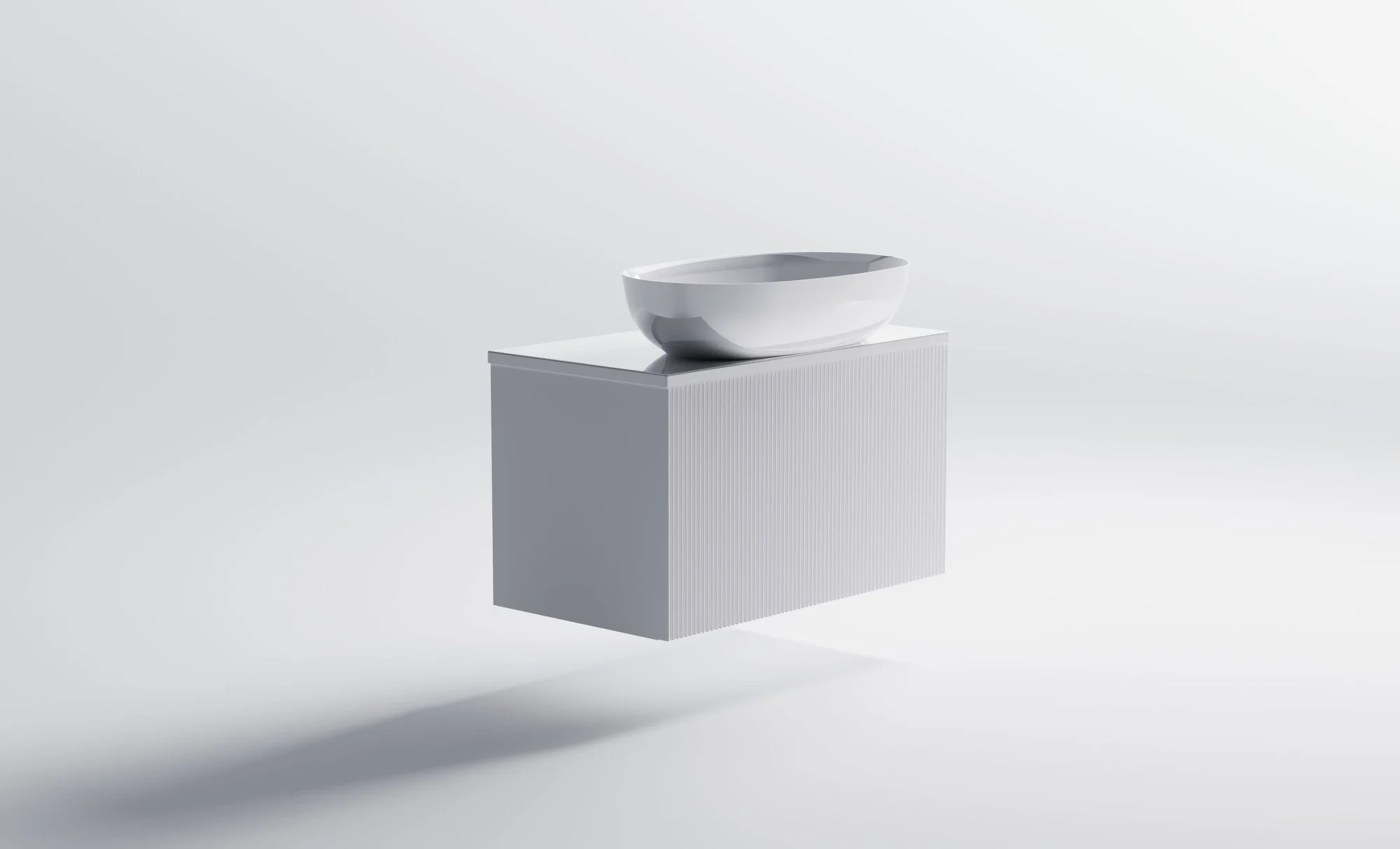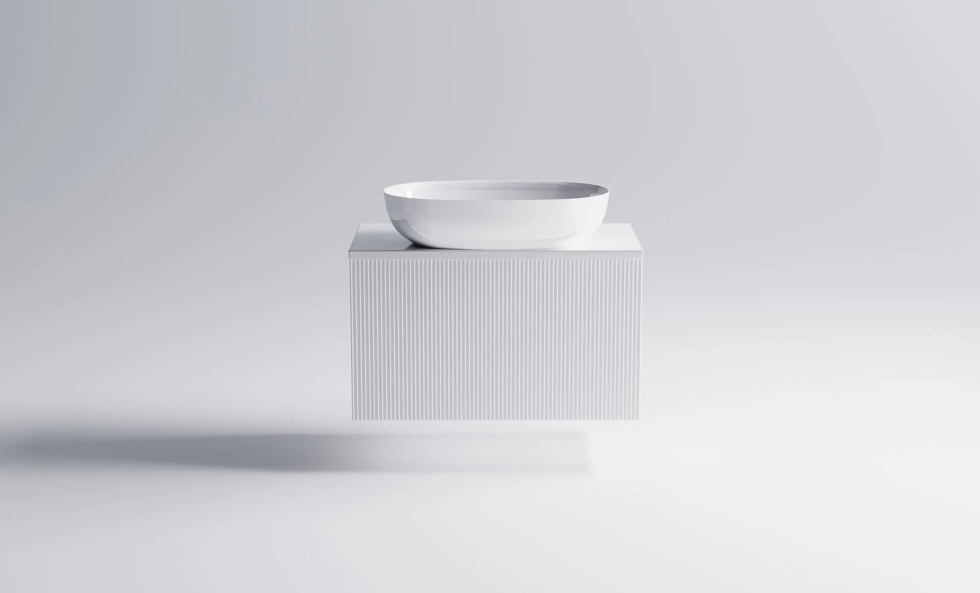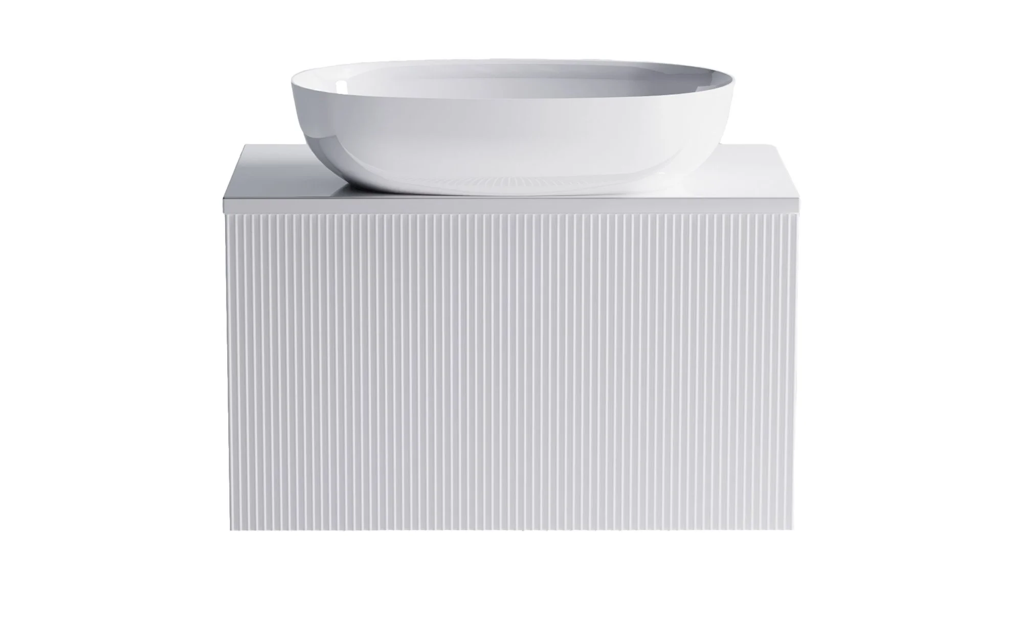 Тумба под раковину М-40 Slim 800х400 мм с ящиком (Ш)800*(В)400*(Г)394 белый матовый + Столешница "М-40 Slim" 800 мм + Раковина "Атрия" 55х35 + фрезеровка волна вертикальная
