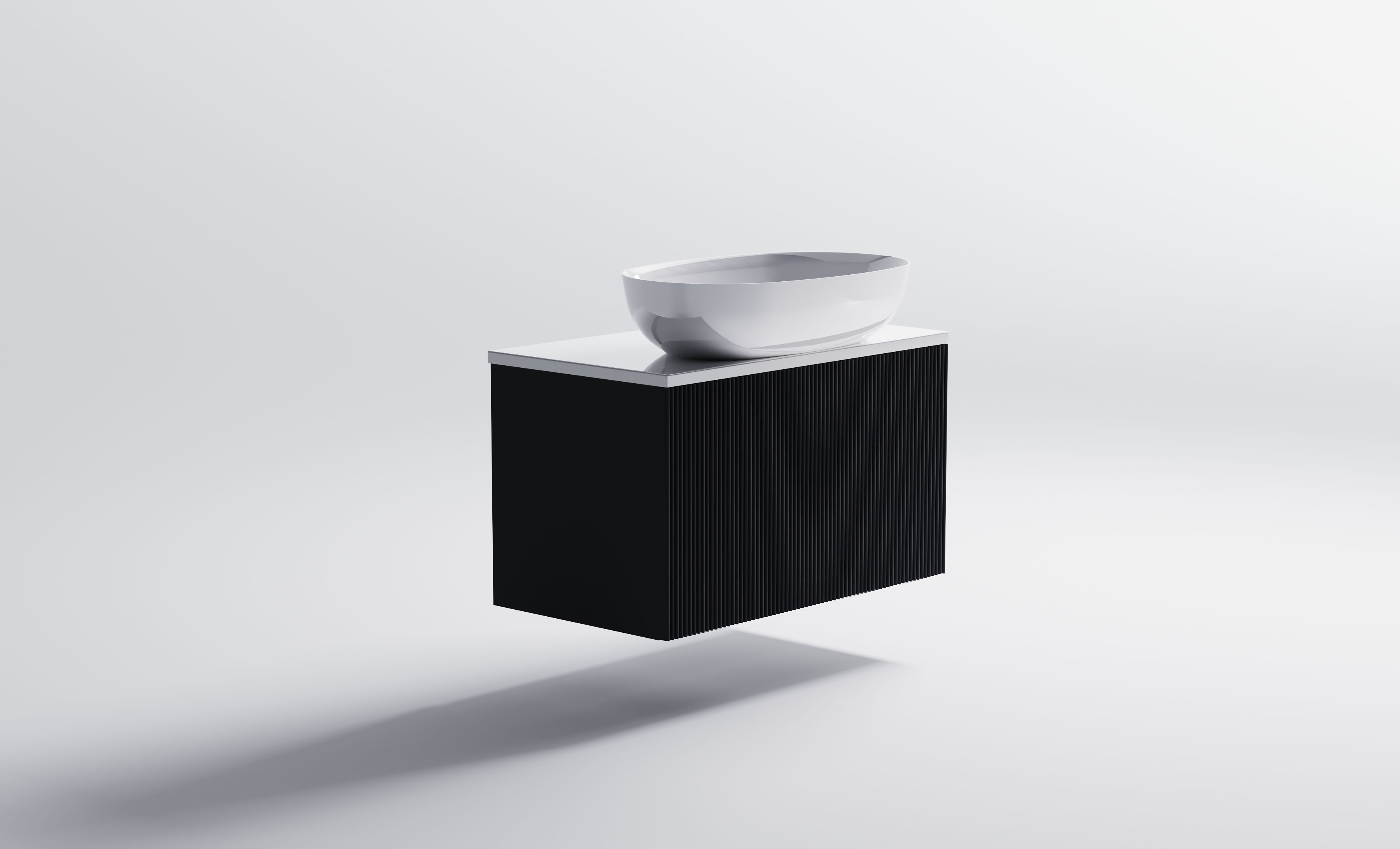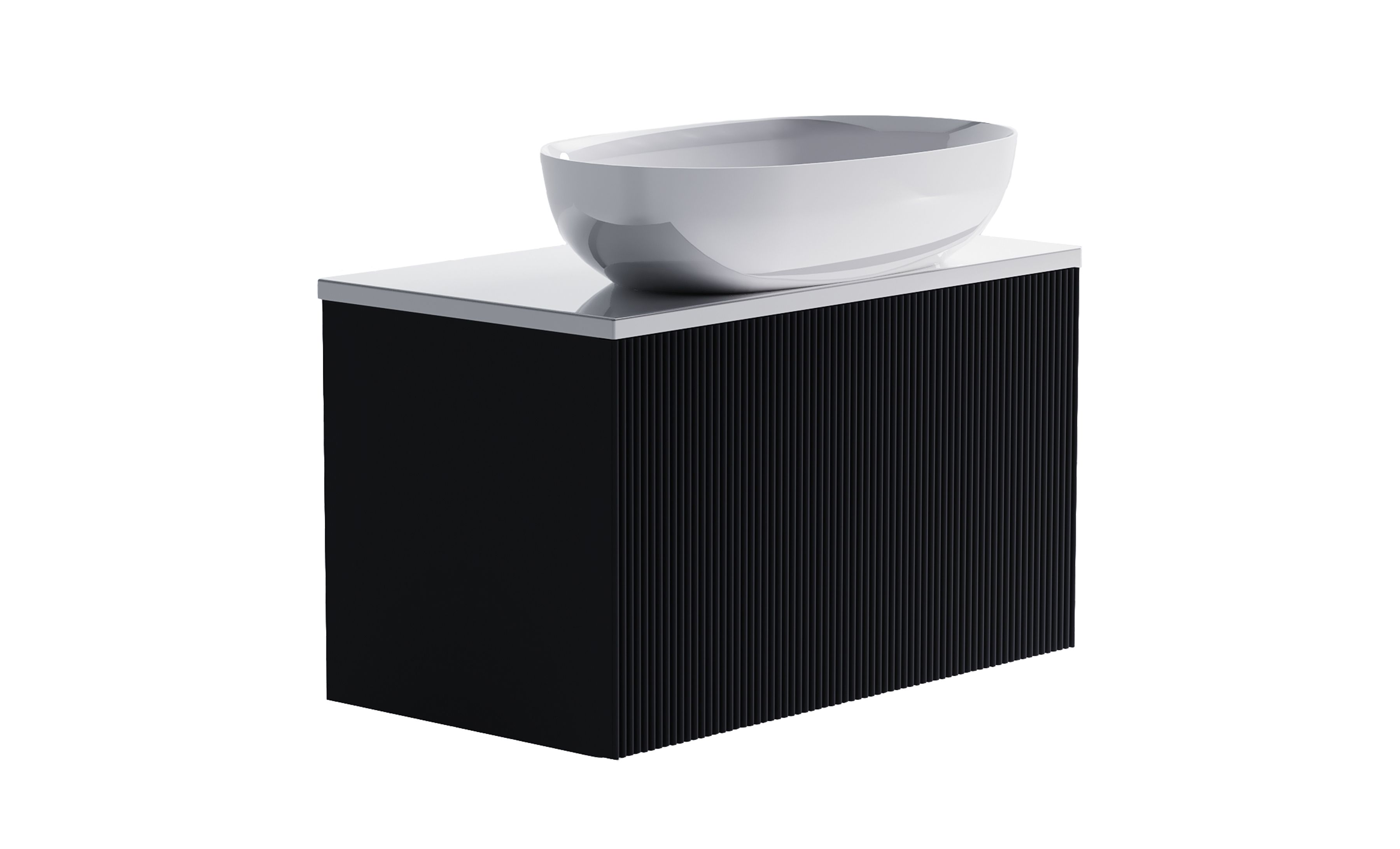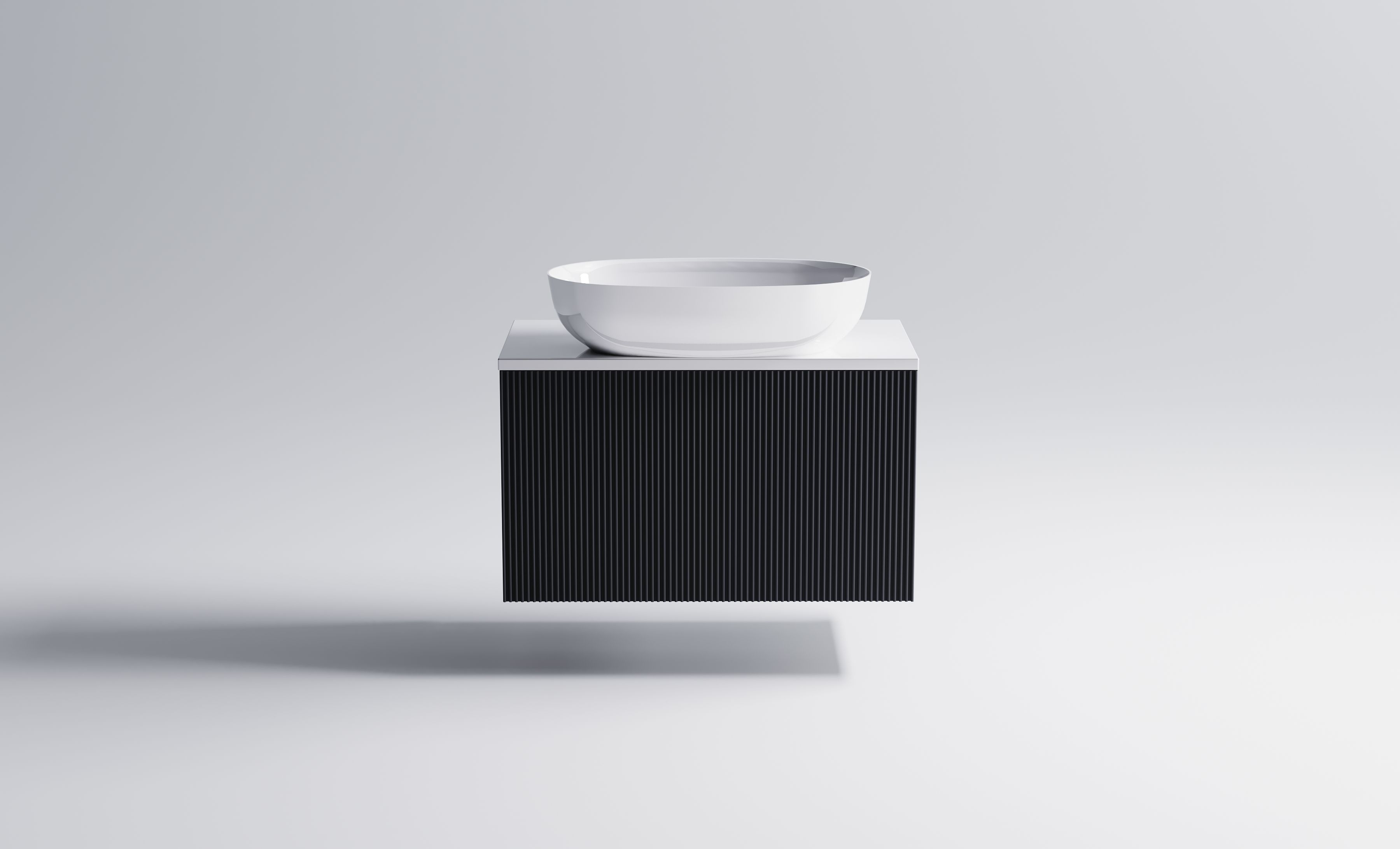 Тумба под раковину М-40 Slim 800х400 мм с ящиком (Ш)800*(В)400*(Г)394 темно-серый (RAL7024 матовый) + Столешница "М-40 Slim" 800 мм + Раковина "Атрия" 55х35 + фрезеровка волна вертикальная