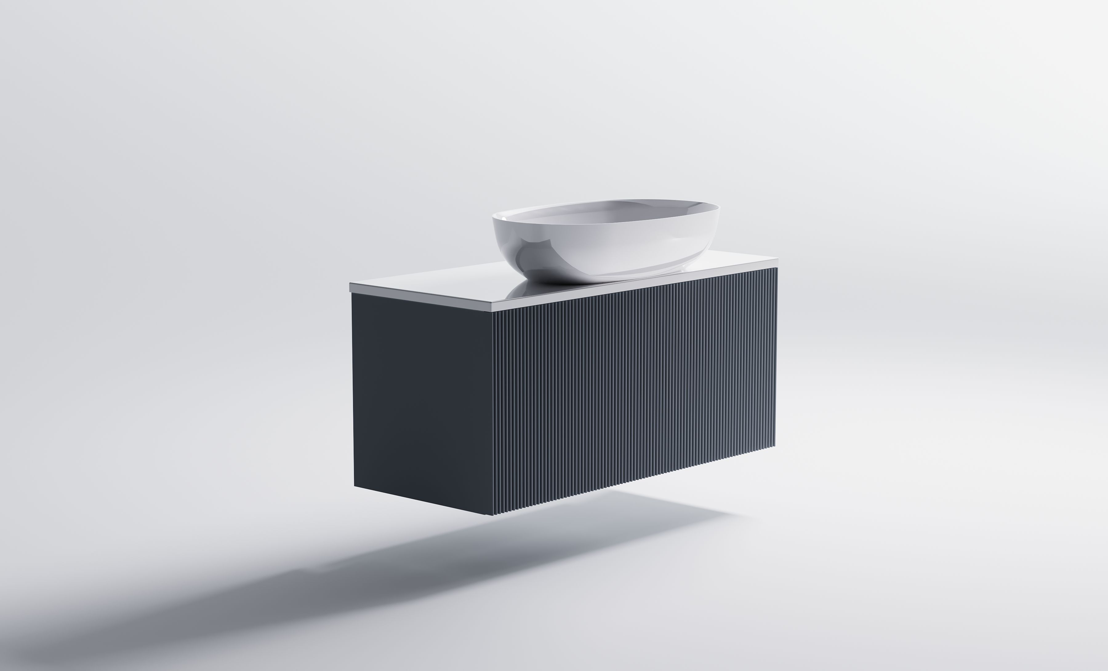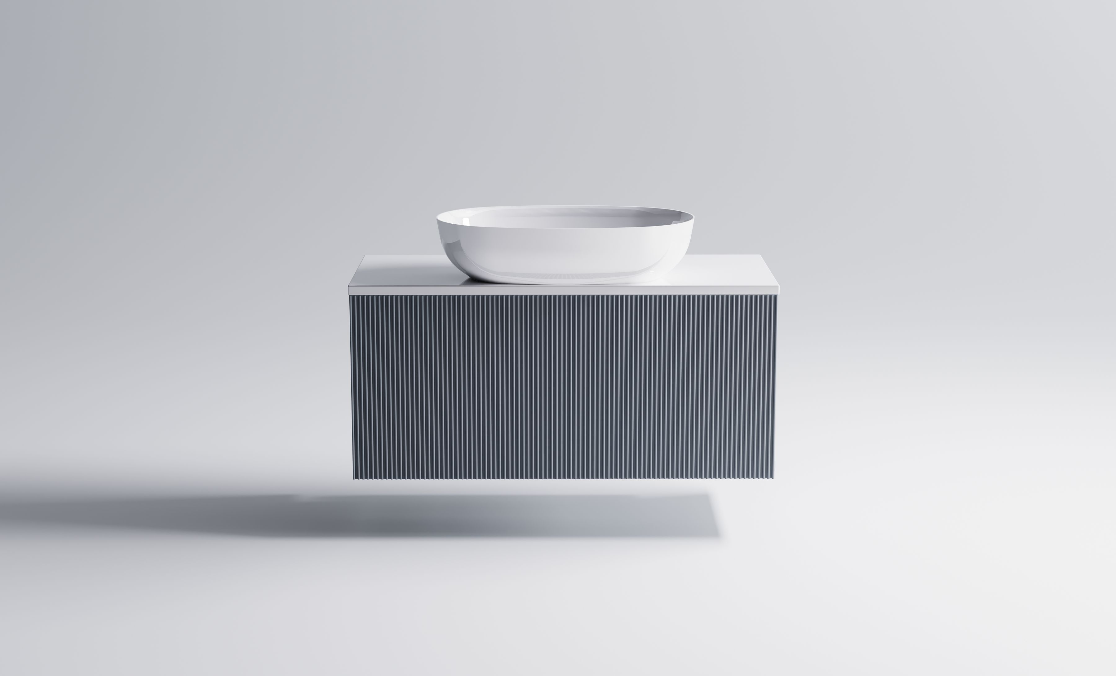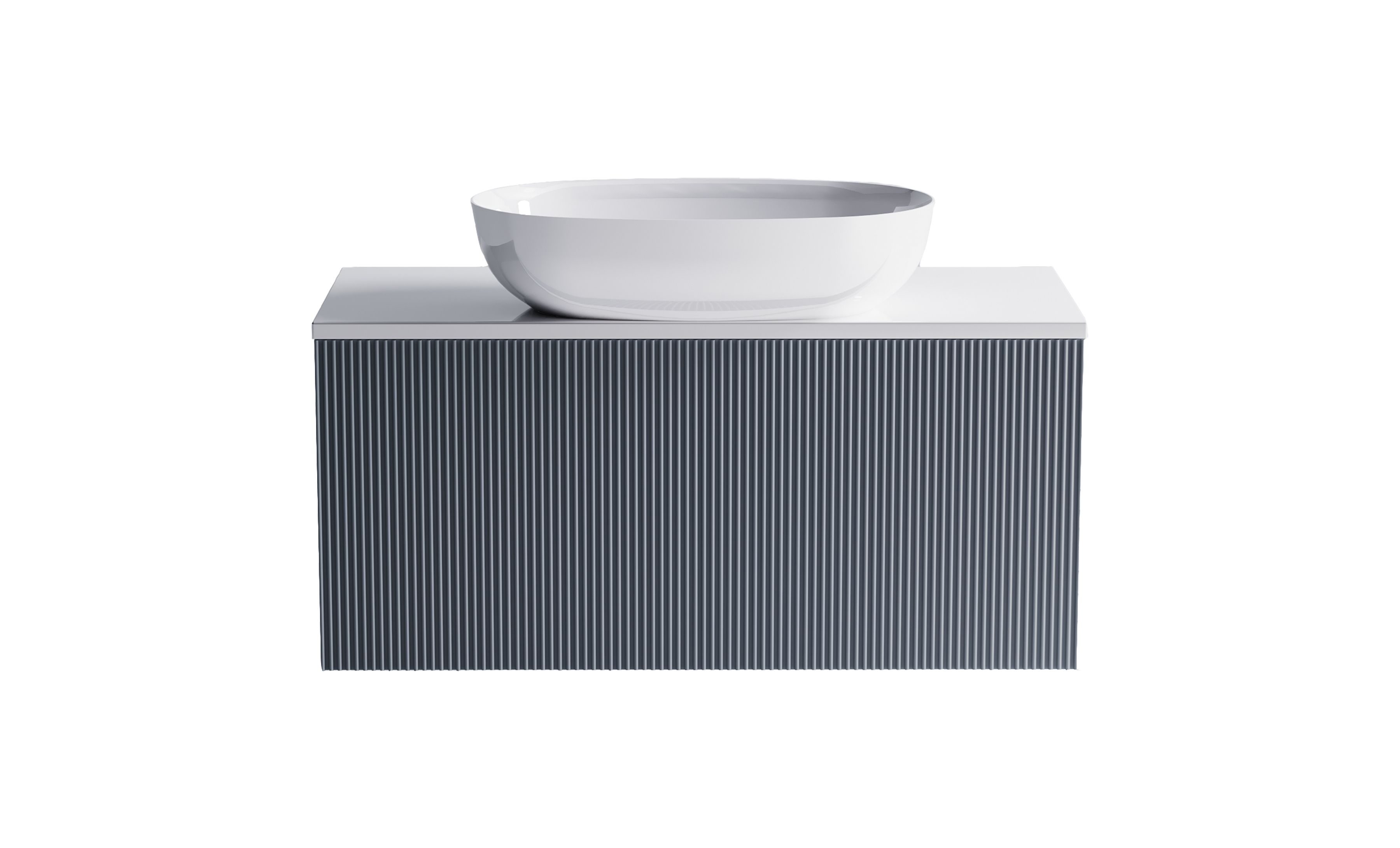Тумба под раковину М-40 Slim 900х400 мм с 1 ящиком серо-голубой (NCS S 3005-R80B матовый)+ Столешница "М-40 Slim" 900 мм + Раковина "Атрия" 55х35 + фрезеровка волна вертикальная