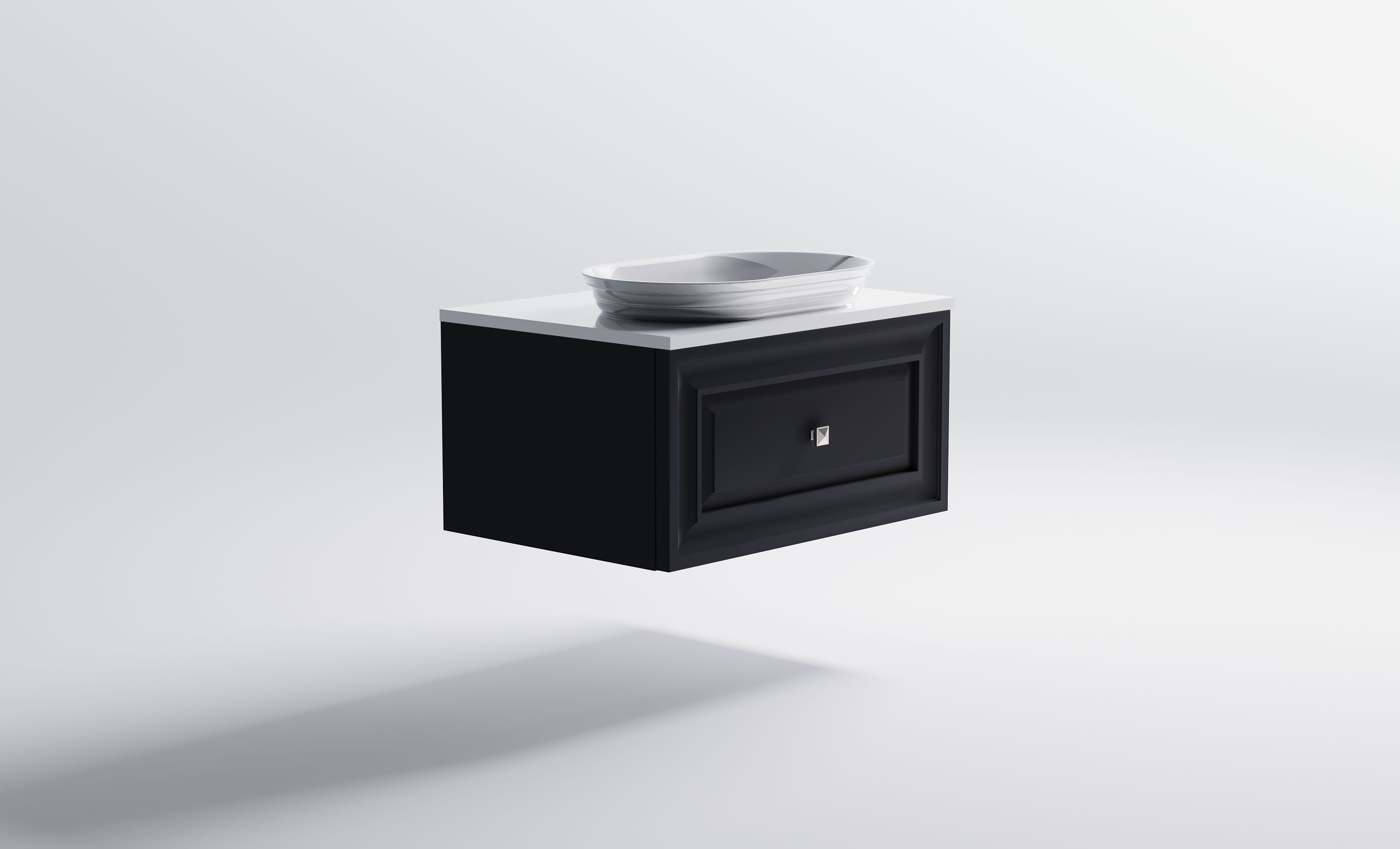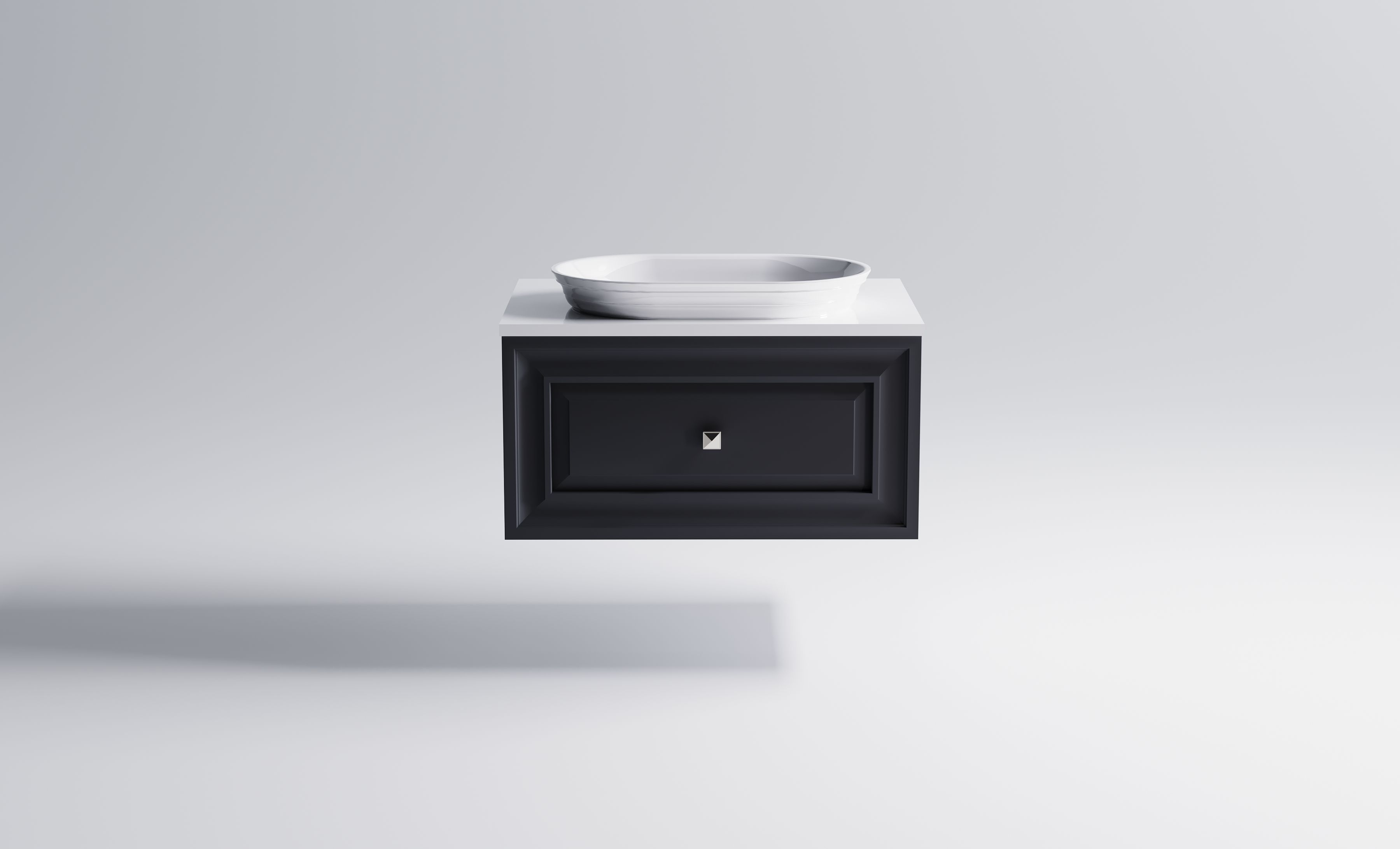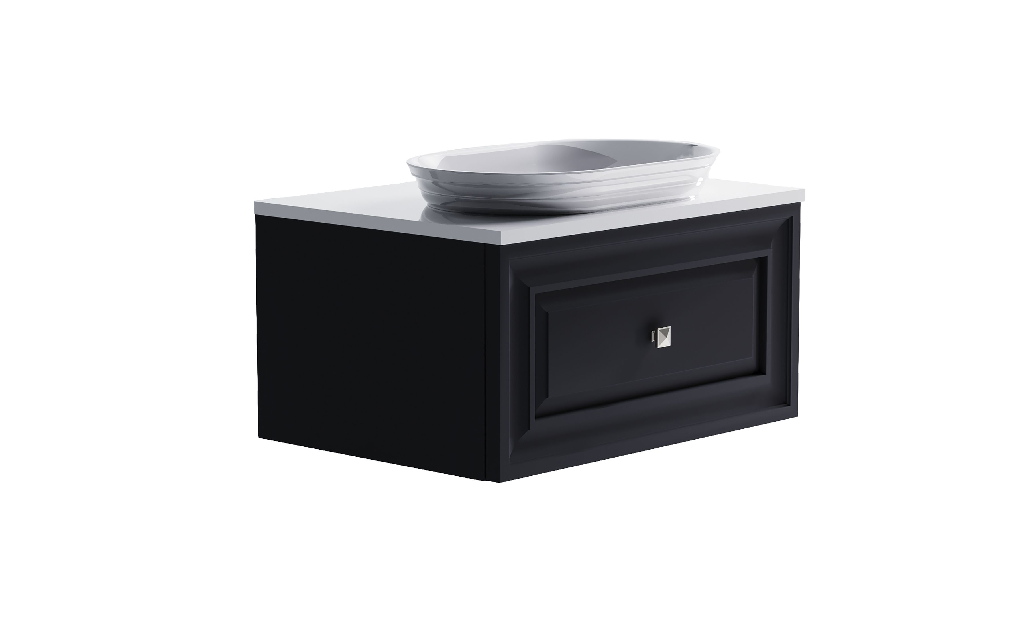 Тумба под раковину Шарм 700 с 1 ящиком с вырезом 700(Ш)х350(В)х514(Г) темно-серый (RAL7024 матовый) + Столешница "Шарм" 700 мм + Раковина "Шарм" 55х35 (полувстроенная)