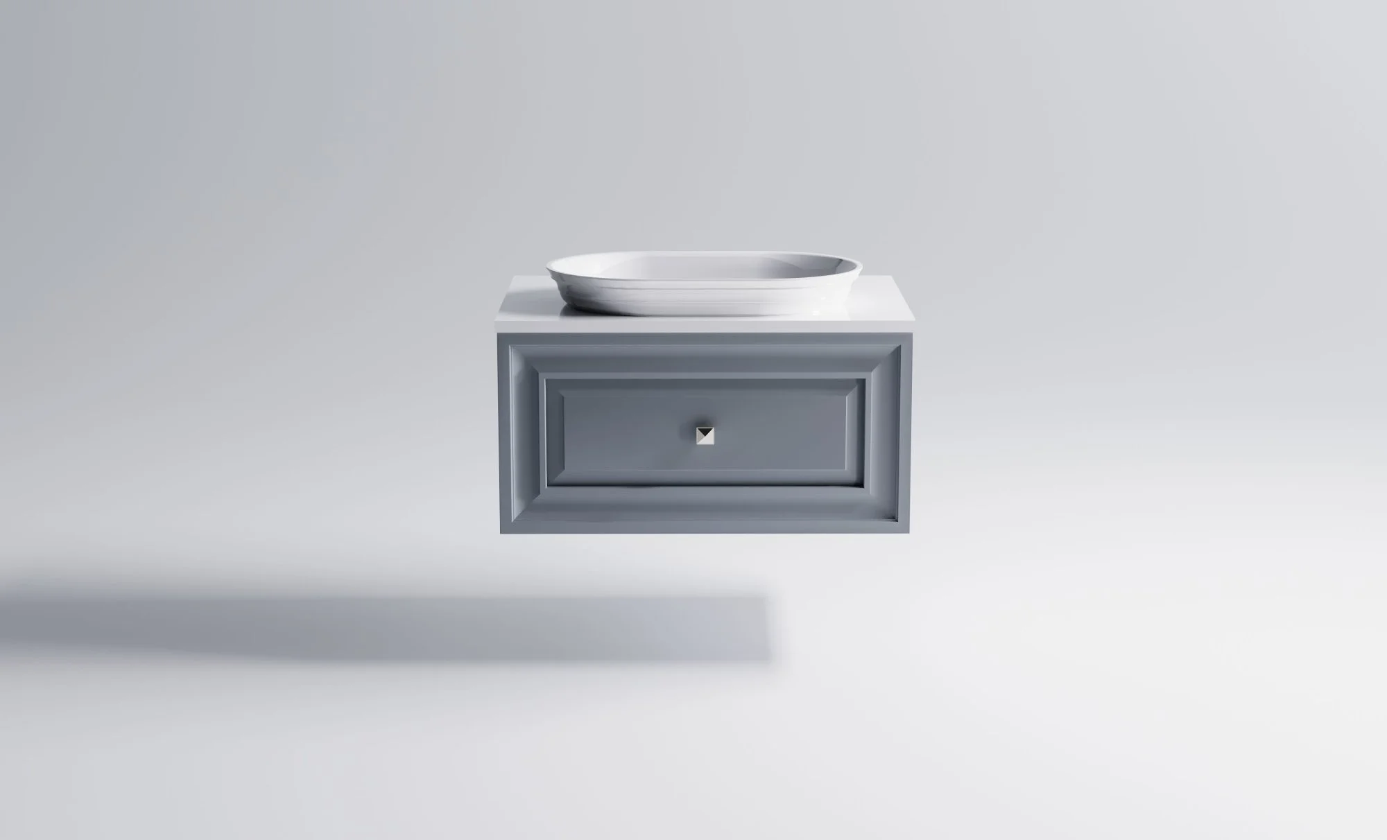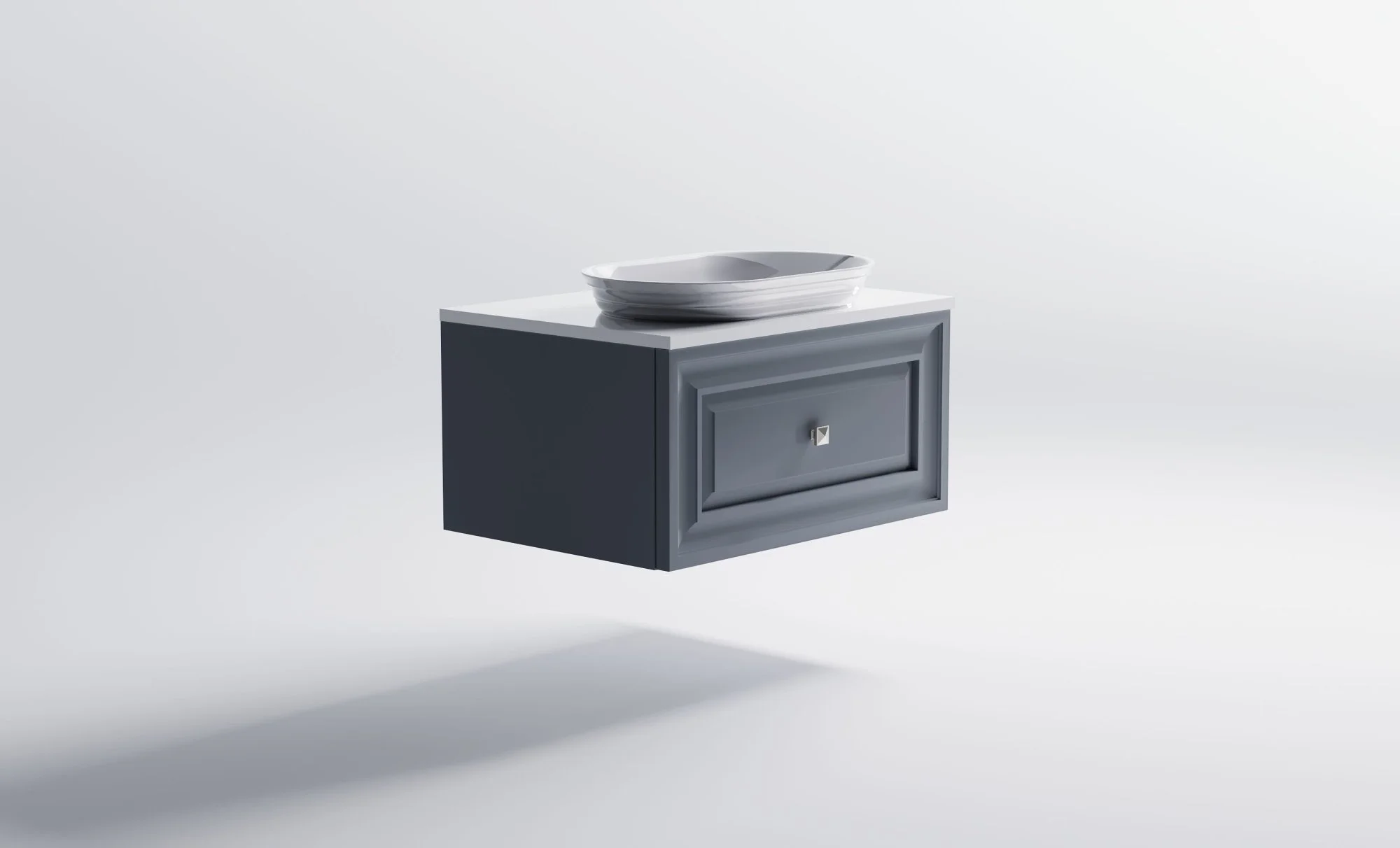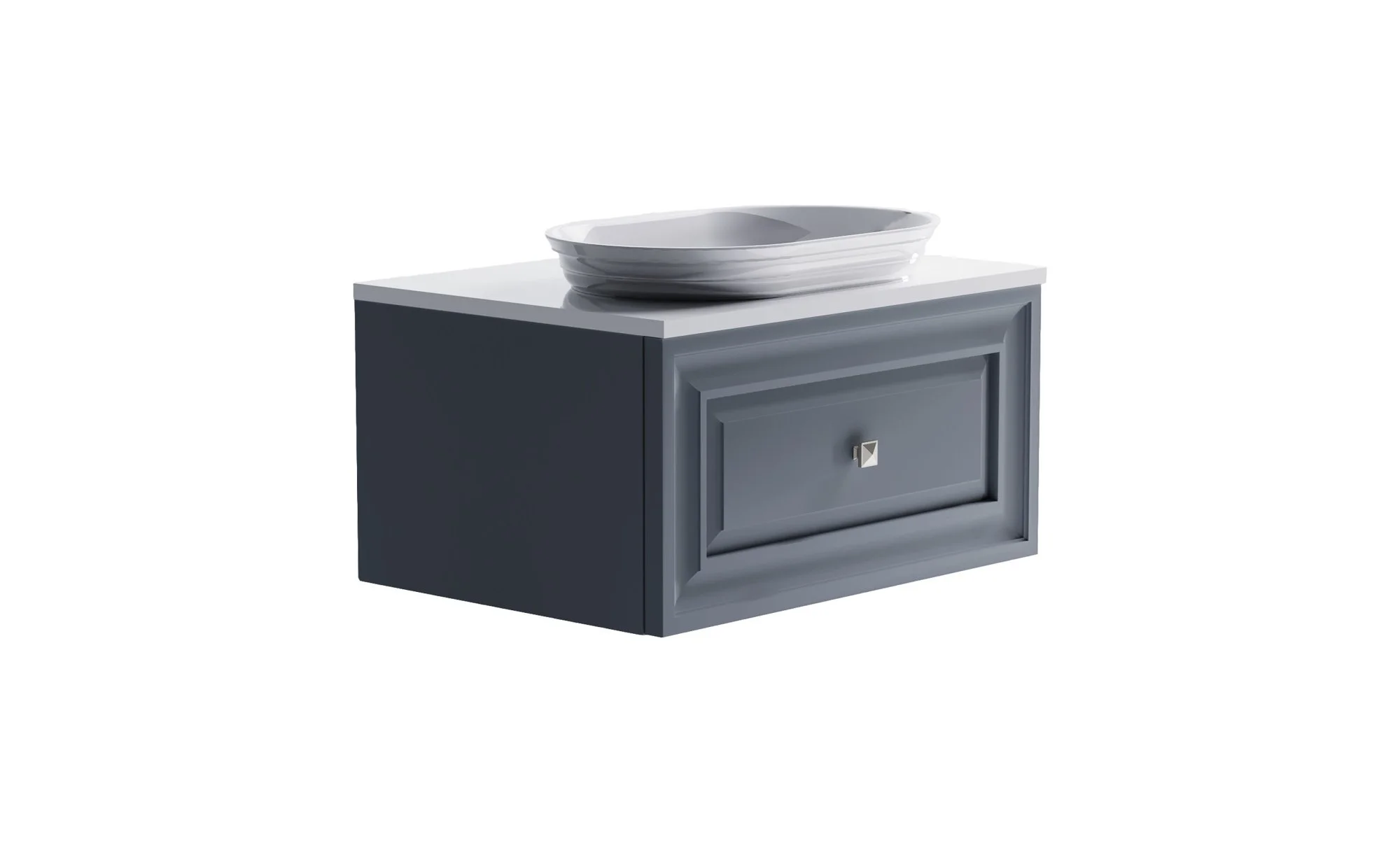 Тумба под раковину Шарм 800 с 1 ящиком с вырезом серо-голубой (NCS S 3005-R80B матовый) + Столешница "Шарм" 800 мм + Раковина "Шарм"