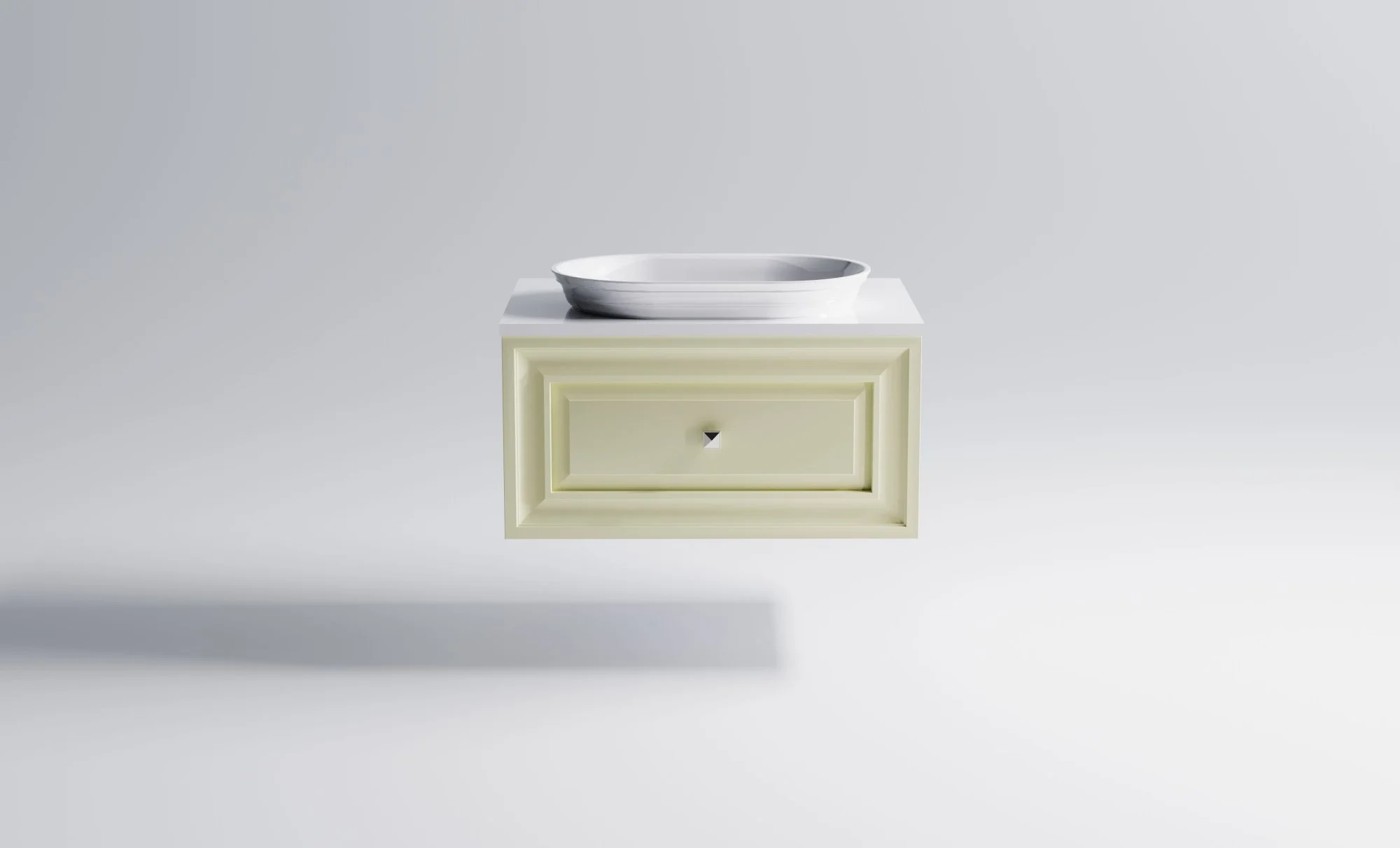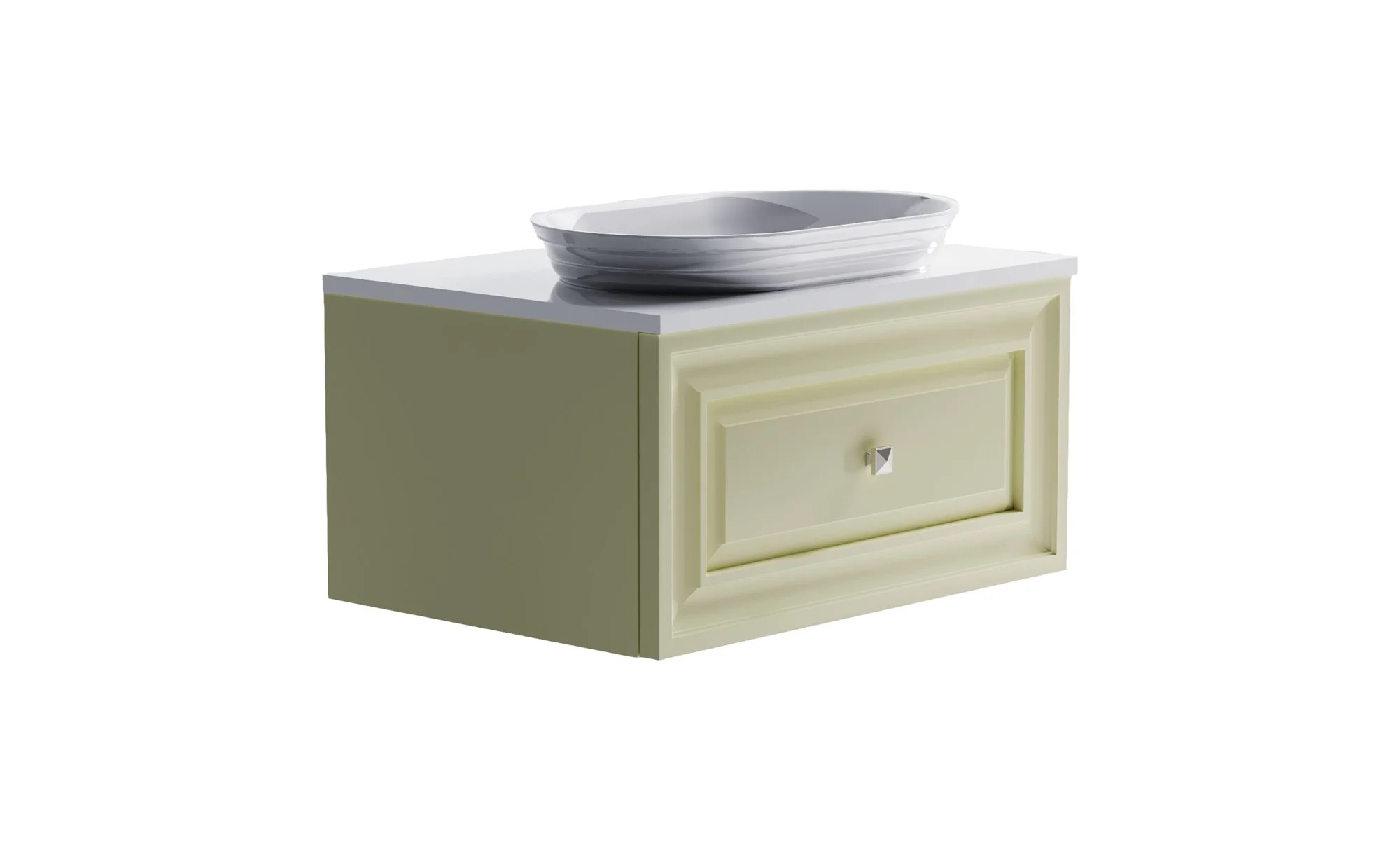 Тумба под раковину Шарм 800 с 1 ящиком с вырезом бежевый (RAL1013 матовый) + Столешница "Шарм" 800 мм + Раковина "Шарм"