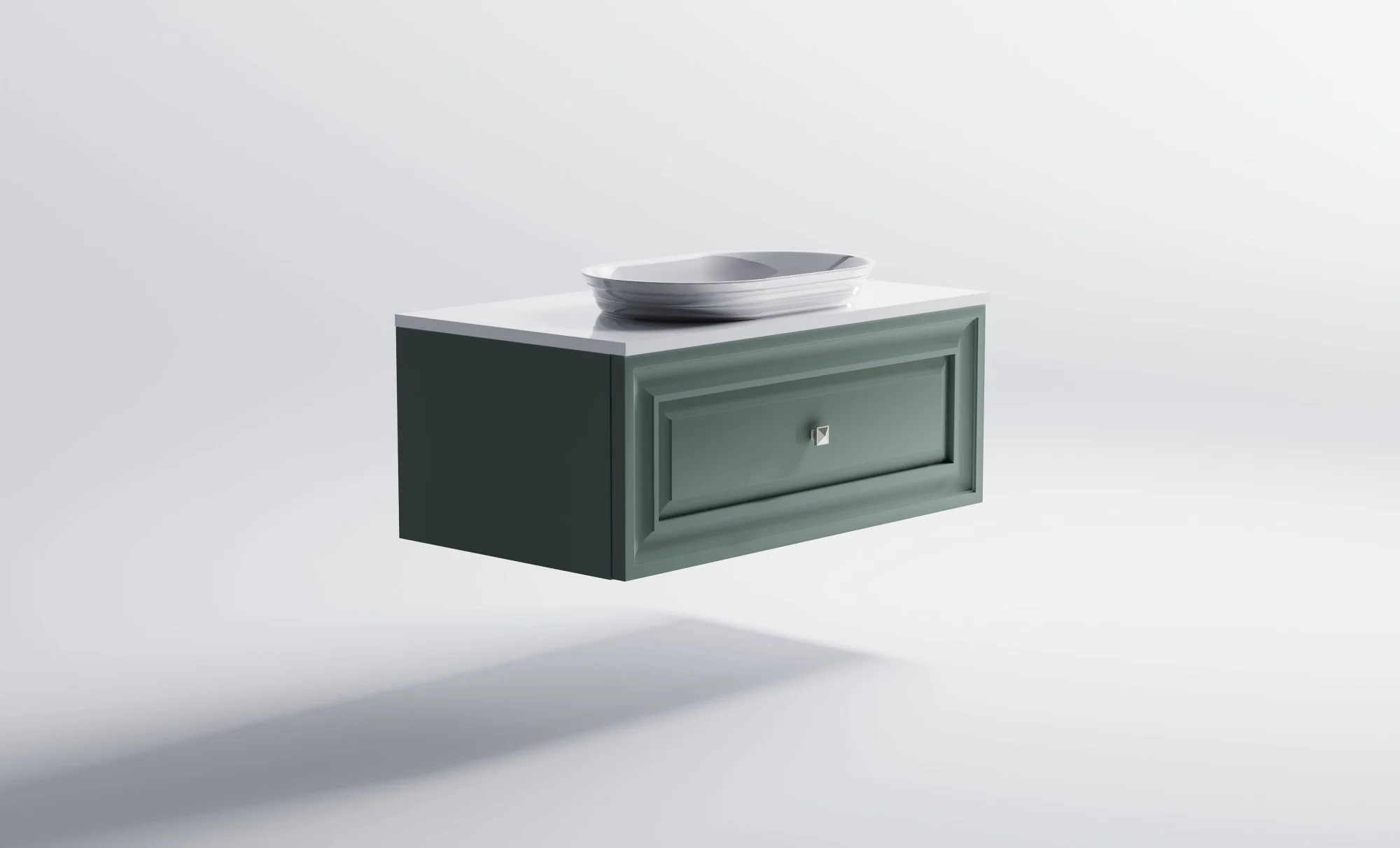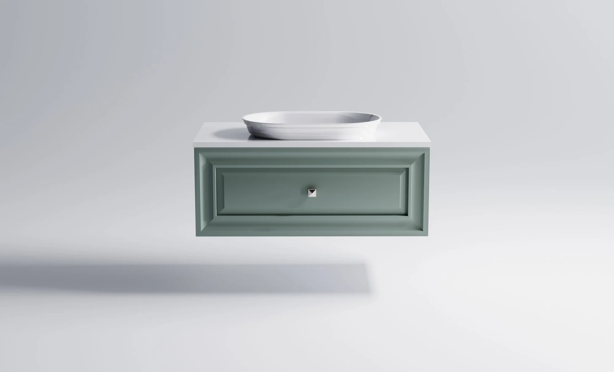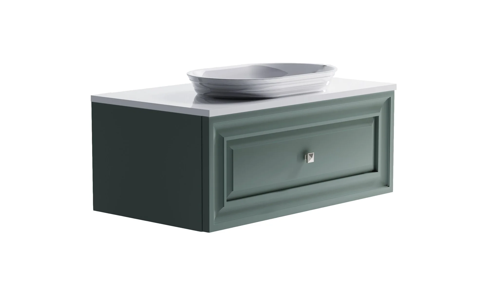 Тумба под раковину Шарм 900 с 1 ящиком с вырезом зеленый (NCS S 3005-b80g матовый) + Столешница "Шарм" 900 мм + Раковина "Шарм"